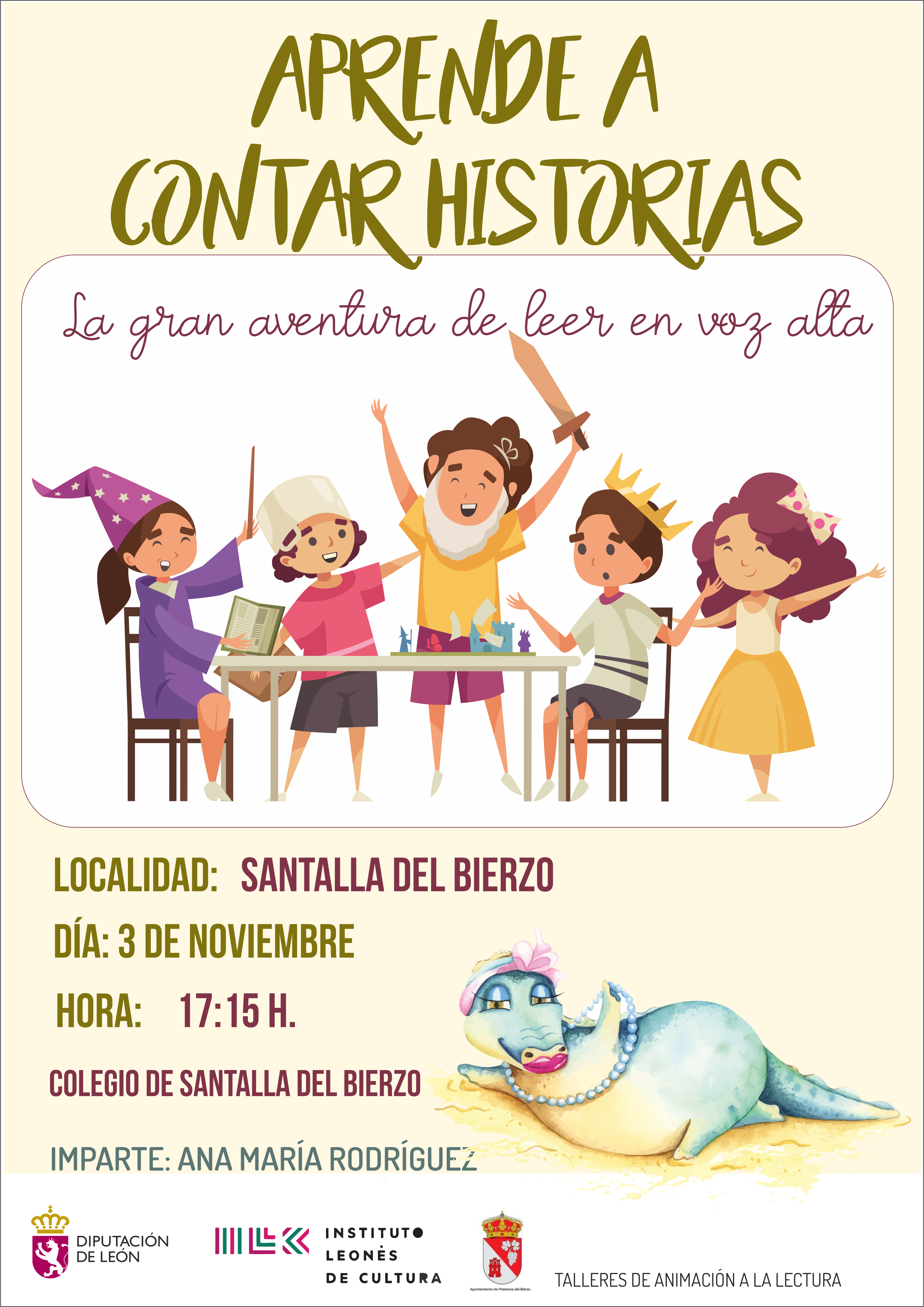 El próximo LUNES 03 de NOVIEMBRE a las 17:15 h, se realizará un taller para aprender a contar historias en las Escuelas de Santalla del Bierzo.