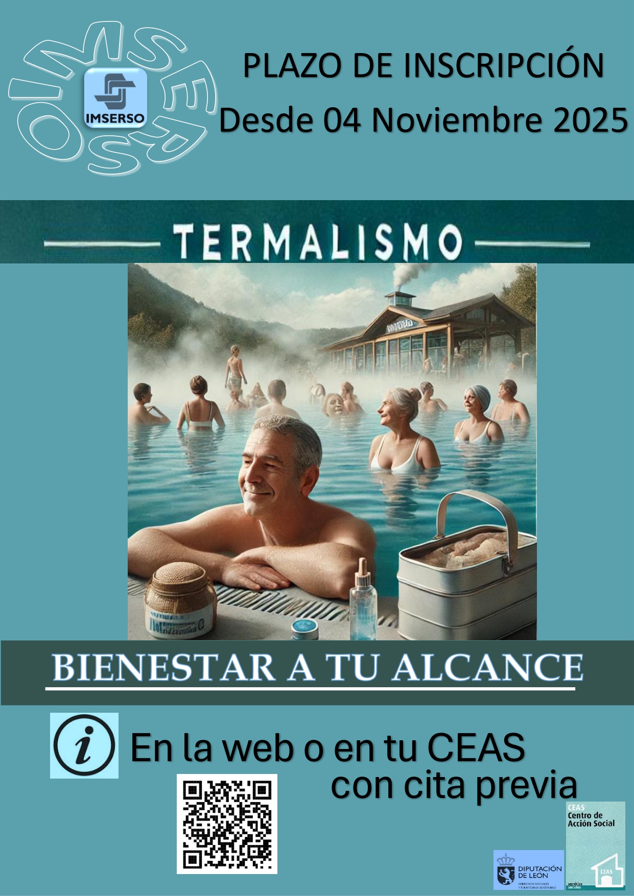 Mañana día 4 de noviembre de 2025, se abre el plazo de solicitud para las nuevas altas en el programa TERMALISMO (balnearios) DEL IMSERSO para el año 2026.