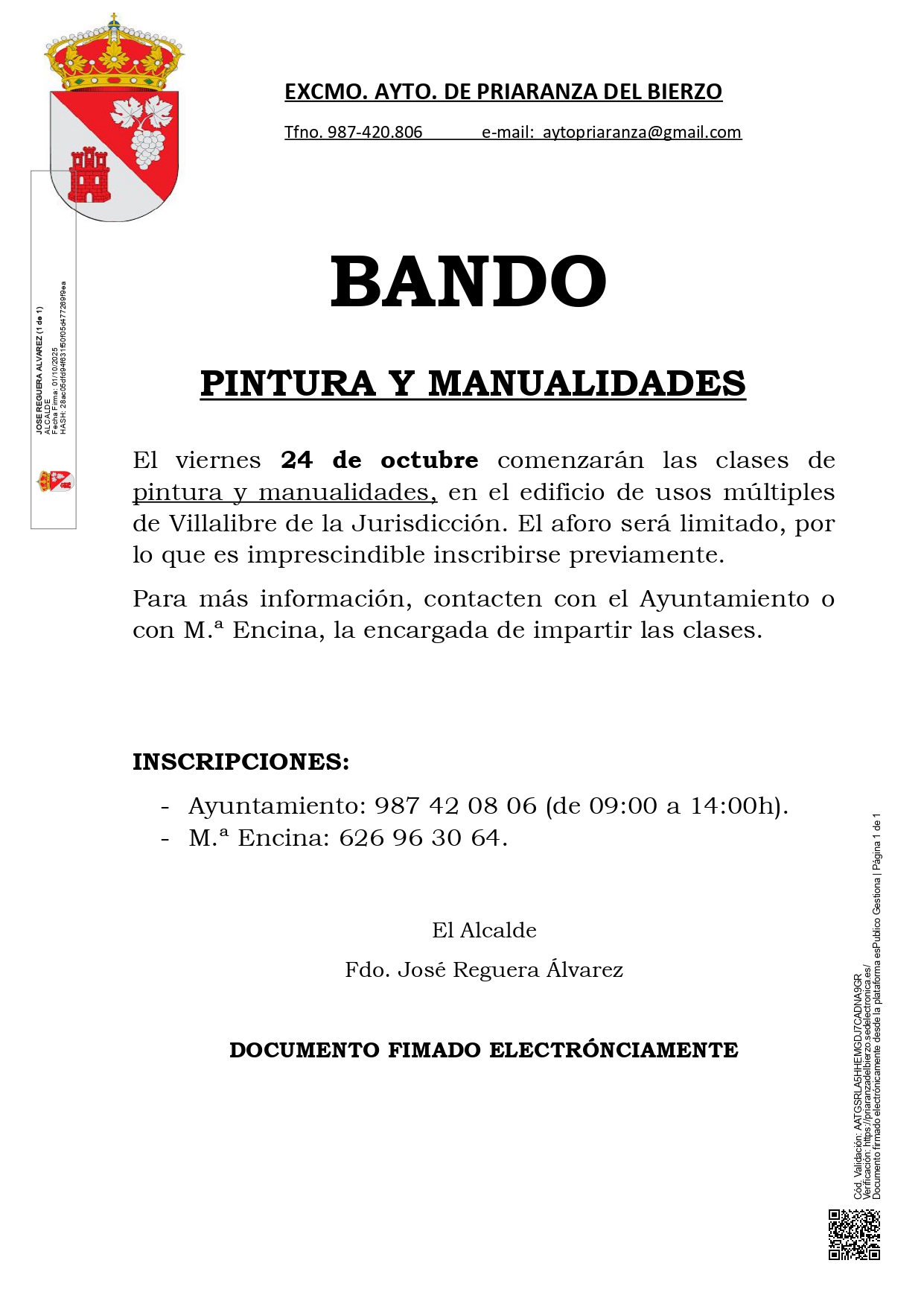 El viernes 24 de octubre de 2025, comenzarán las clases de pintura y manualidades, en el edificio de usos múltiples de Villalibre de la Jurisdicción.