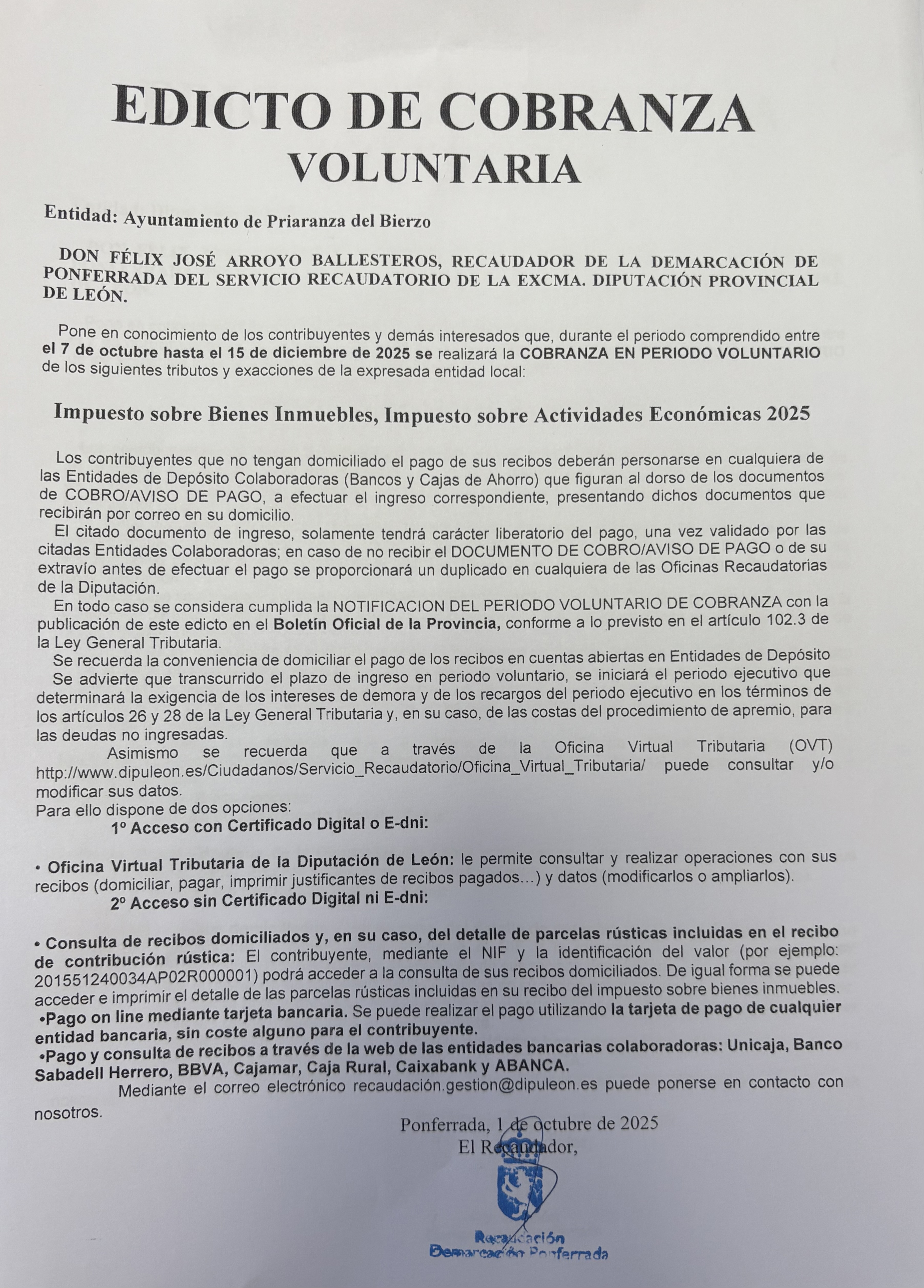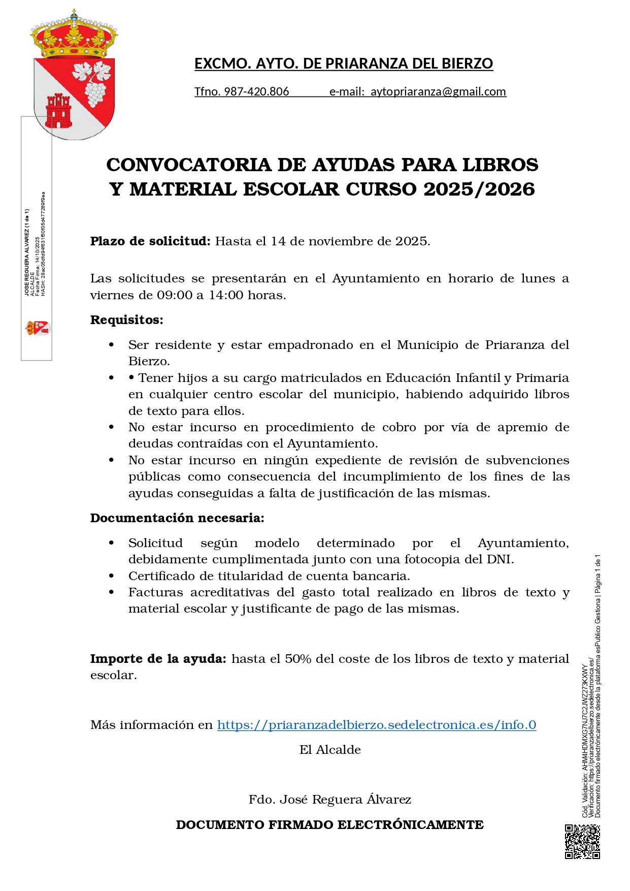 Requisitos, documentación y toda la información en el Ayuntamiento de Priaranza del Bierzo y en la Sede Electrónica -> https://priaranzadelbierzo.sedelectronica.es/info.0