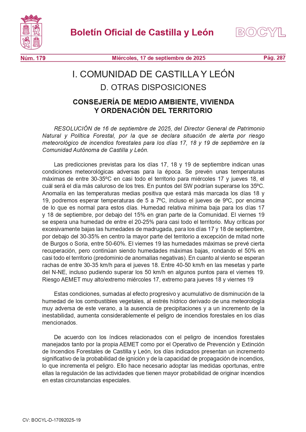 ⚠️LA JUNTA DE CASTILLA Y LEÓN DECLARA PELIGRO MEDIO DE INCENDIOS FORESTALES HASTA EL 31 DE OCTUBRE⚠️