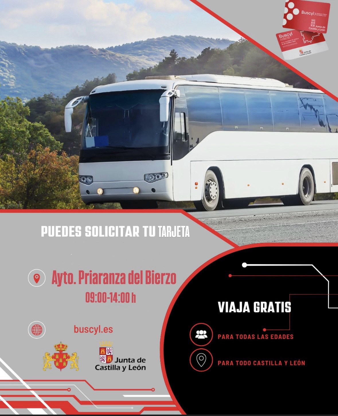 Desde el Ayuntamiento de Priaranza del Bierzo, informamos a todos los vecinos/as que se ha puesto en marcha el programa BUSCyL de la Junta de Castilla y León, mediante el cual se permite a los usuarios viajar gratis con los servicios de autobuses interurbanos y metropolitanos gestionados por la Junta.