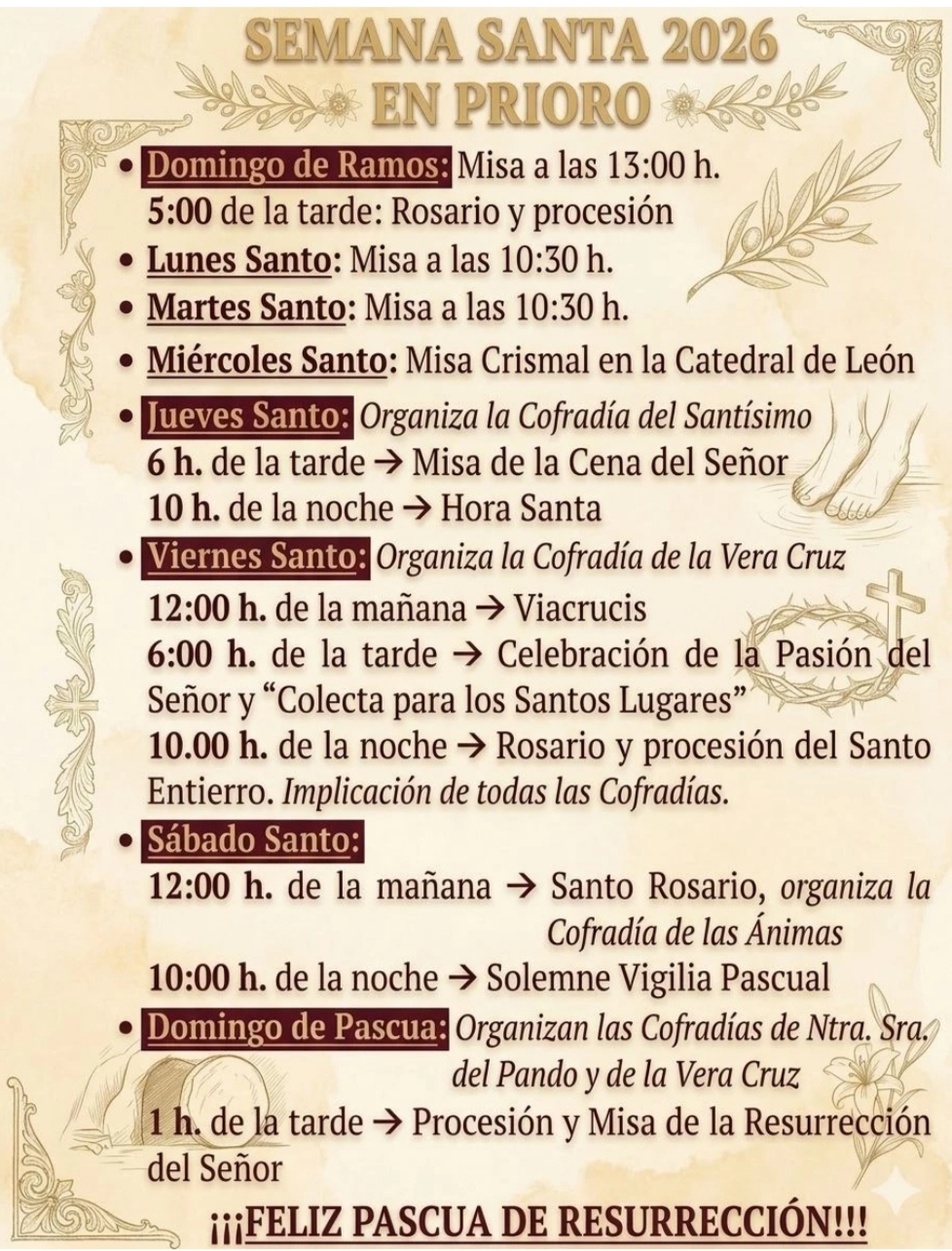 Se comunica a toda la población, que mañana martes 17 de marzo de 2026, a partir de las 08.30 h, se va a proceder al CORTE DE AGUA en la zona del ALTO DE LA CALLE de Prioro, pudiéndose ver afectadas zonas próximas a esta, para el arreglo de una avería.