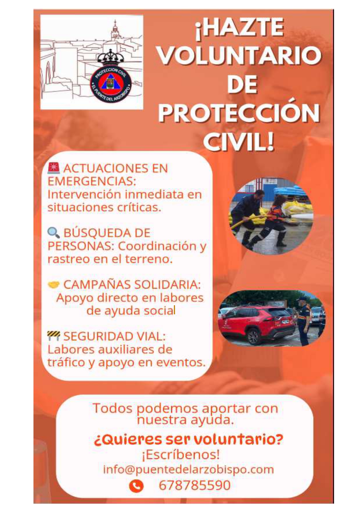 La Agrupación de Protección Civil de nuestro municipio inicia una campaña de captación de nuevos miembros para reforzar su servicio. El voluntariado es una pieza clave en la seguridad de nuestro pueblo y necesitamos personas con ganas de colaborar y ayudar a sus vecinos.