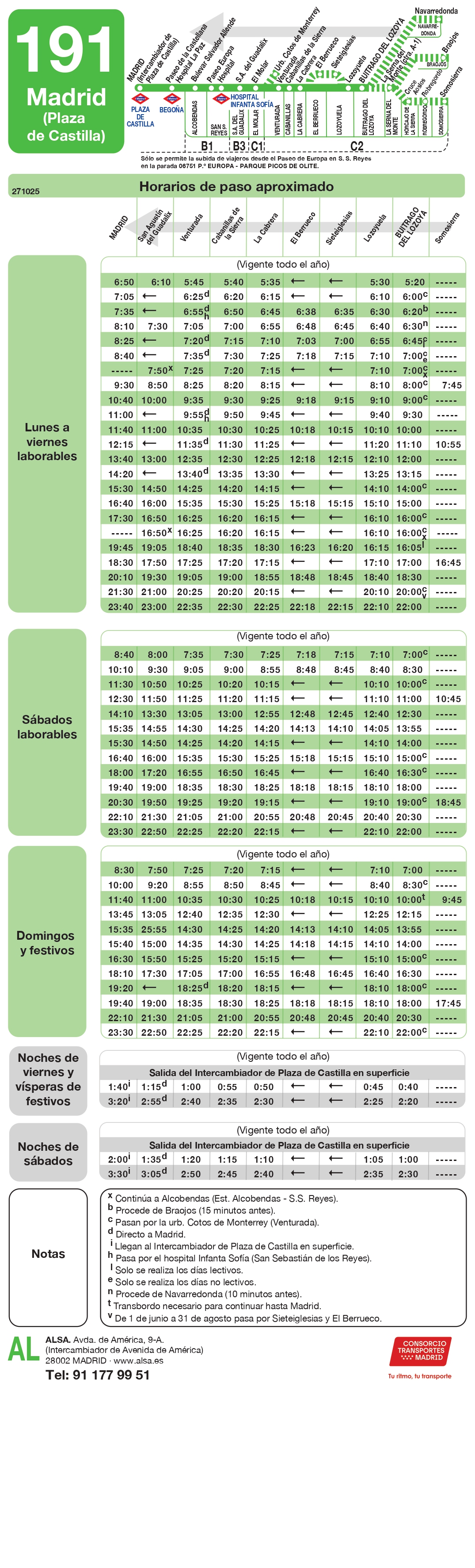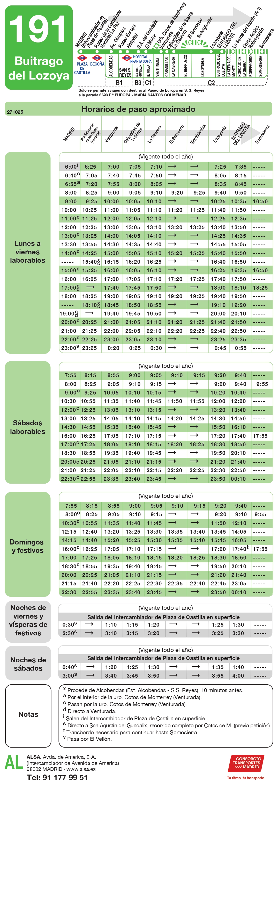 Nuevos horarios de autobuses (líneas 191 y 193)