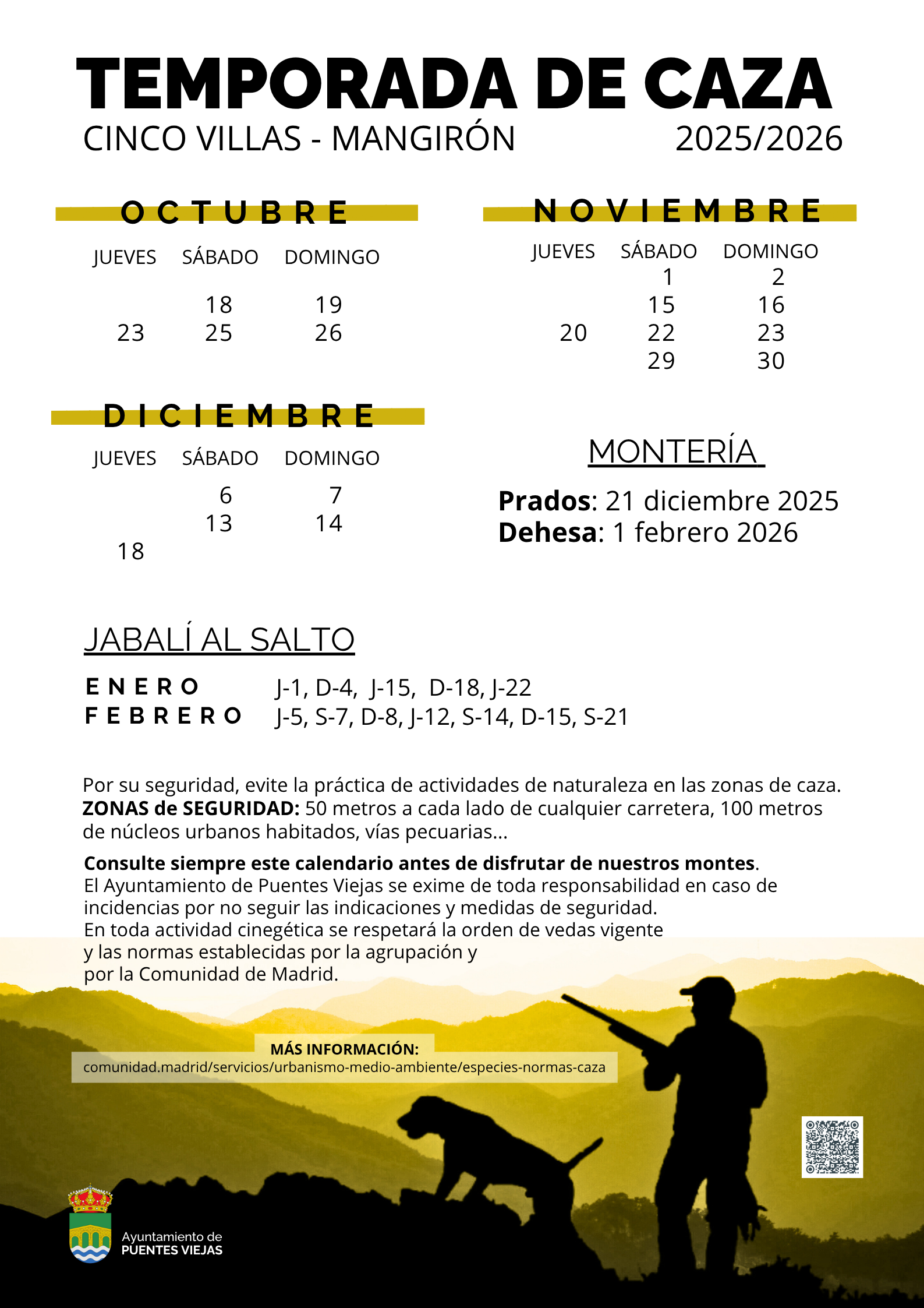 Comienza la temporada de caza 2025-2026 en el municipio de Puentes Viejas.