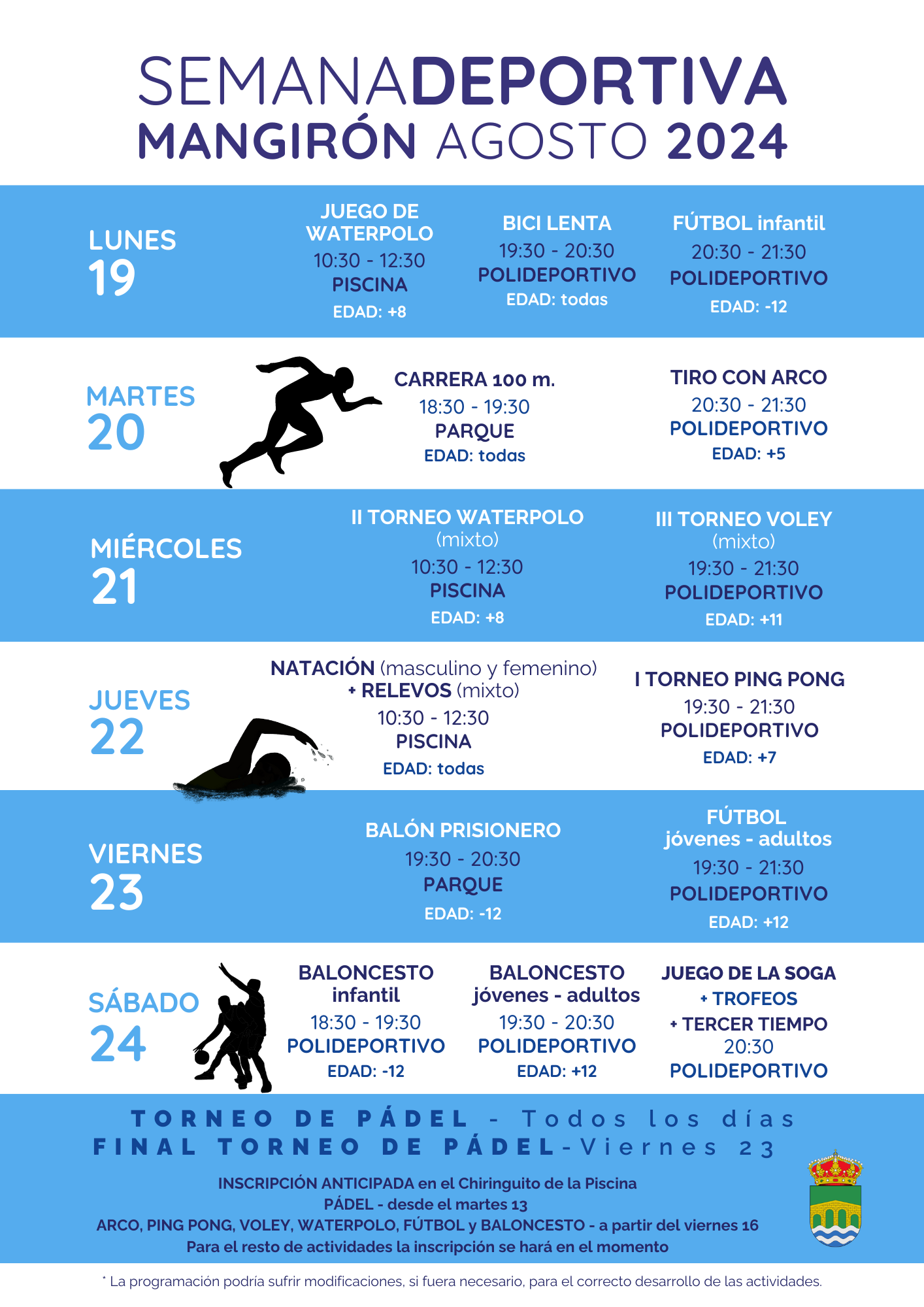 INSCRIPCIONES (en el chiringuito de la piscina):- Pádel: a partir del martes 13