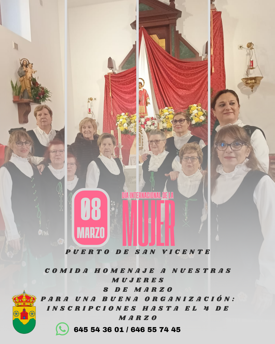 El Ayuntamiento de Puerto de San Vicente informa a todas las vecinas que ya se está trabajando en la organización de las actividades con motivo del Día Internacional de la Mujer.