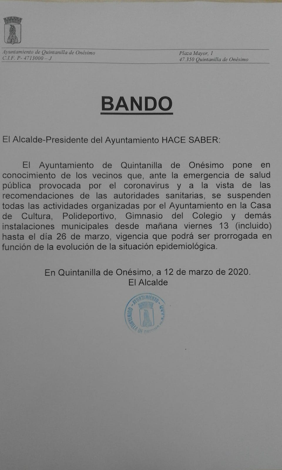 Según instrucciones de la Junta de Castilla y León quedan suspendidas todas las actividades docentes desde el lunes 16 hasta el día 26. Igualmente la Guardería permanecerá cerrada durante ese periodo. -