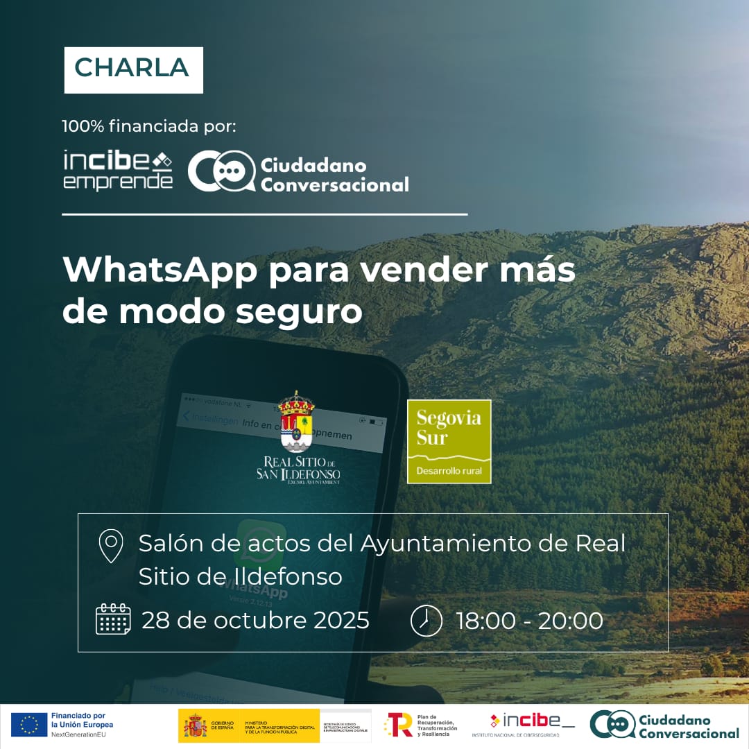 Dentro de este programa, con la Semana WhatsApp, Ciudadano Conversacional busca demostrar que herramientas tan cotidianas como WhatsApp —combinadas con inteligencia artificial y buenas prácticas de ciberseguridad— pueden transformarse en aliadas para el desarrollo local. Segovia Sur acogerá un ciclo de actividades gratuitas que ofrecerá a ciudadanía, profesionales, emprendedores y administraciones locales la oportunidad de aprender a utilizar WhatsApp de forma segura y de explorar su potencial e(...)
