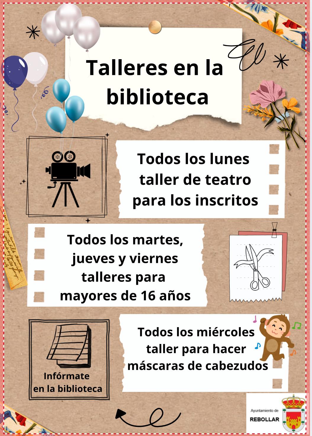Se informa a todos los vecinos y vecinas del municipio que la Biblioteca Municipal pone en marcha una serie de talleres culturales, dirigidos a distintos públicos, con el siguiente calendario: -