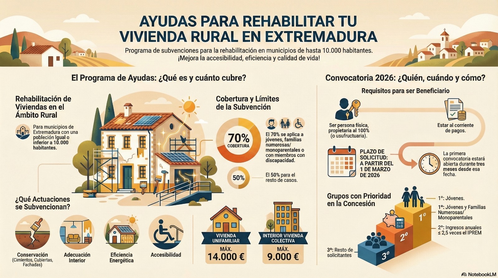 AYUDAS A LA REHABILITACIÓN DE VIVIENDAS EXTREMADURA 2026