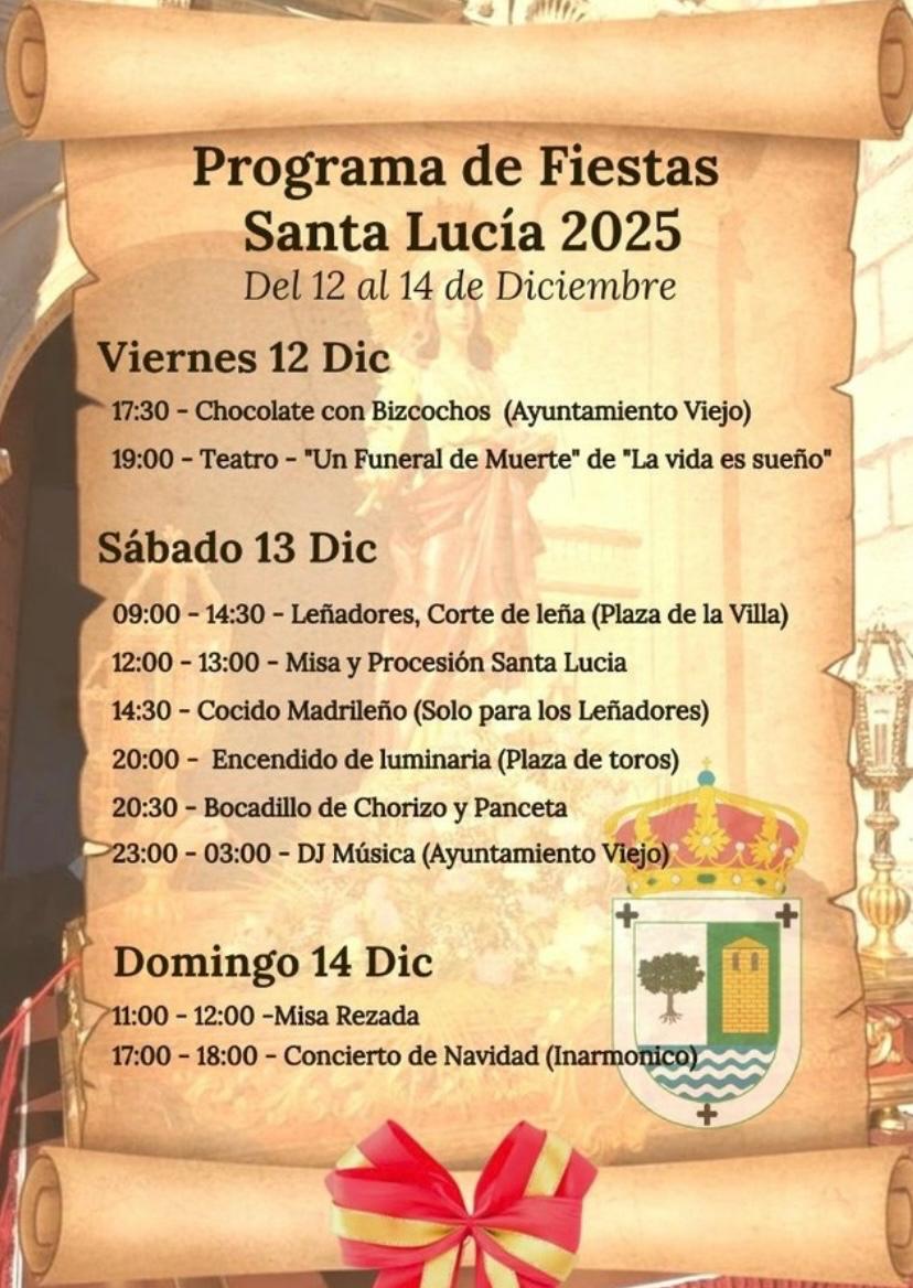 Os recordamos la programación de nuestras fiestas de Santa Lucía, que dan comienzo este Viernes 12 de diciembre. ¡Ya queda menos!