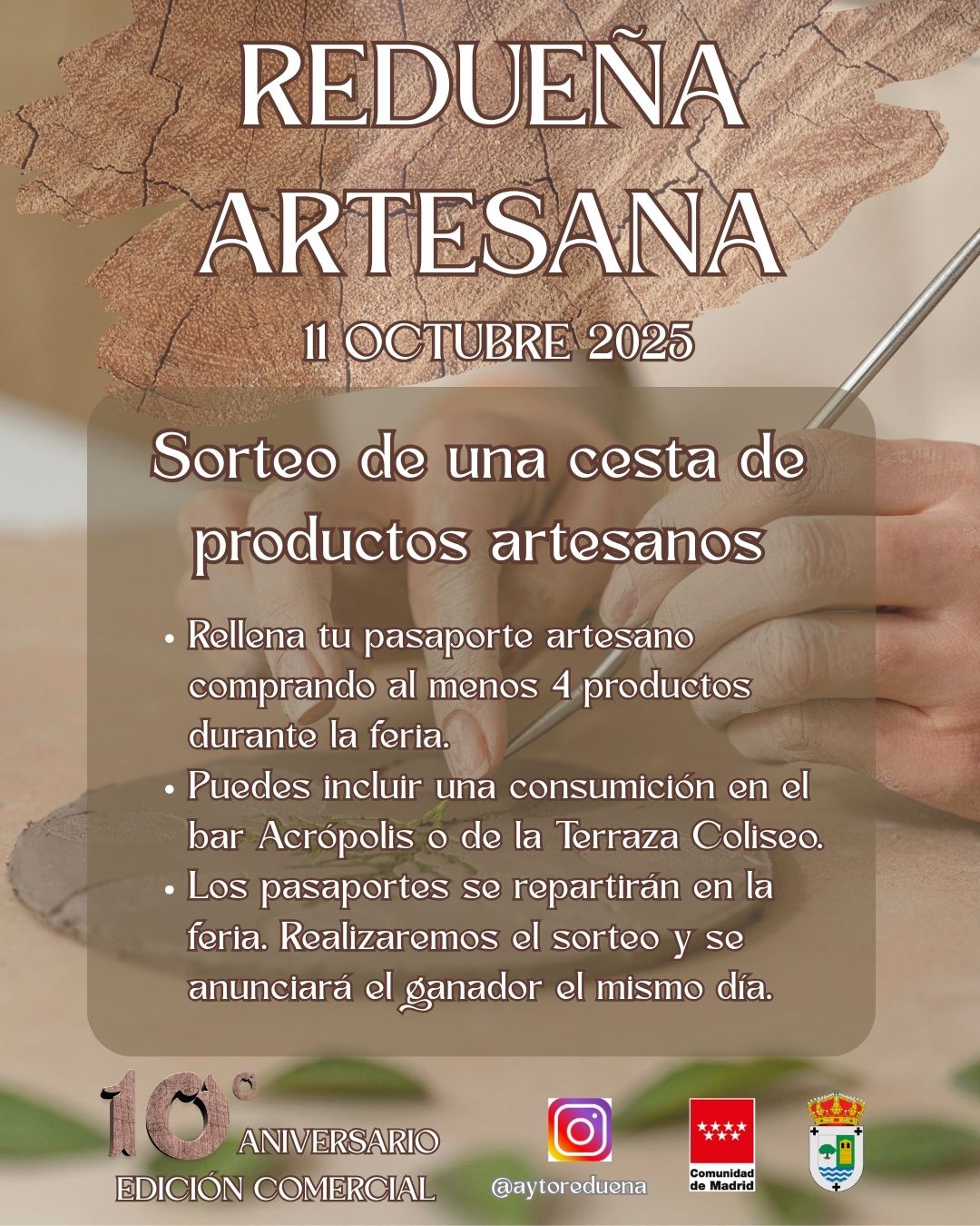 Este sábado 11 de octubre de 2025 vuelve Redueña Artesana para celebrar su 10º Aniversario. Nuestro pueblo recibirá a más de 30 artesanos de la zona en un día lleno de tradición, sabor y creatividad.