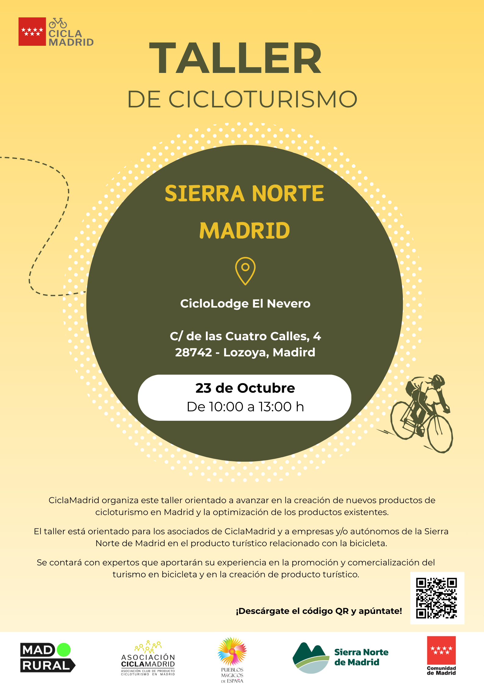 Es un taller gratuito financiado por la Dirección General de Turismo de la Comunidad de Madrid, y contará con expertos en marketing turístico, creación de producto y comercialización del cicloturismo.