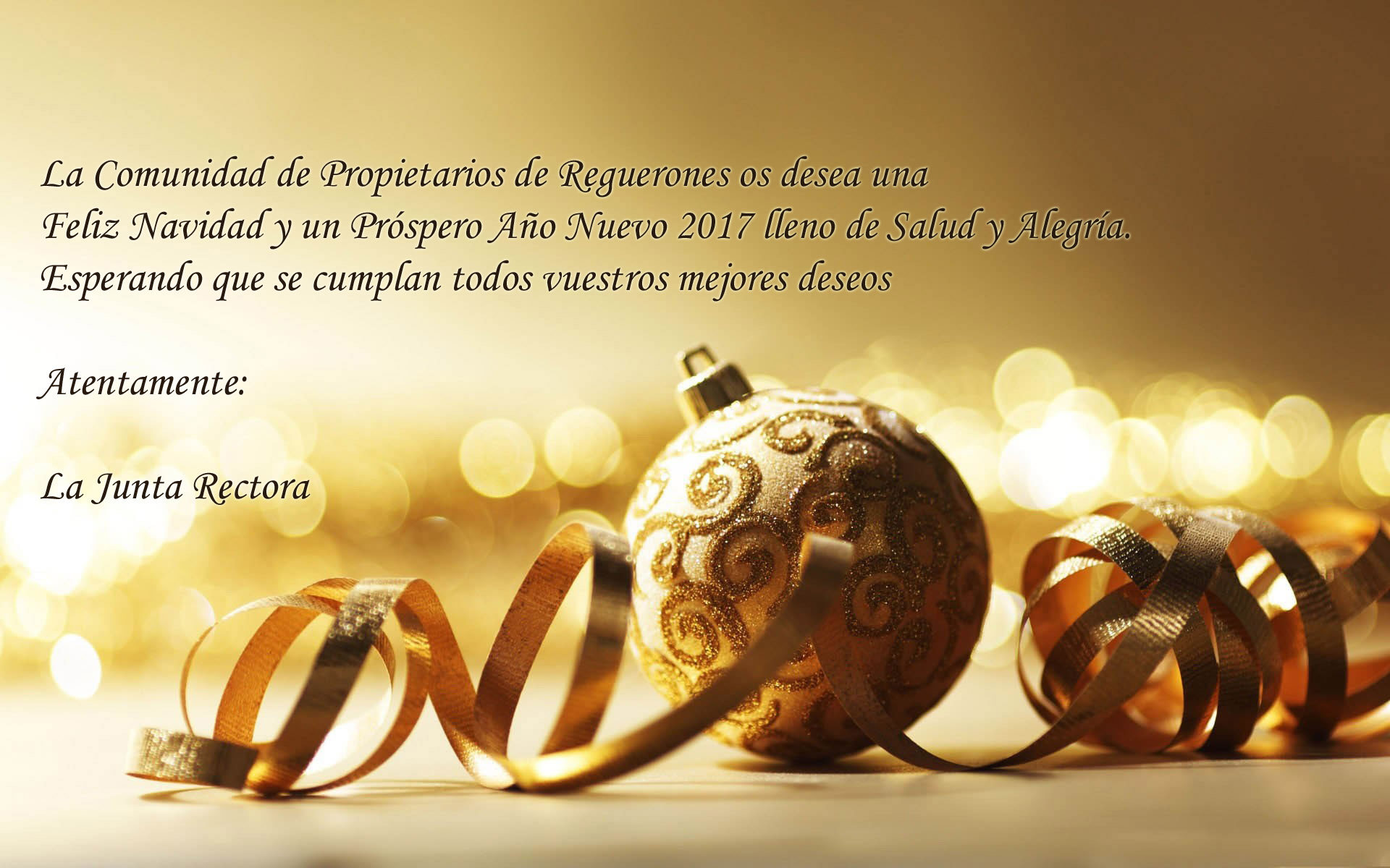 La Comunidad de Propietarios de la Urbanización Reguerones os desea a todos unas felices fiestas y un próspero Año Nuevo 2017