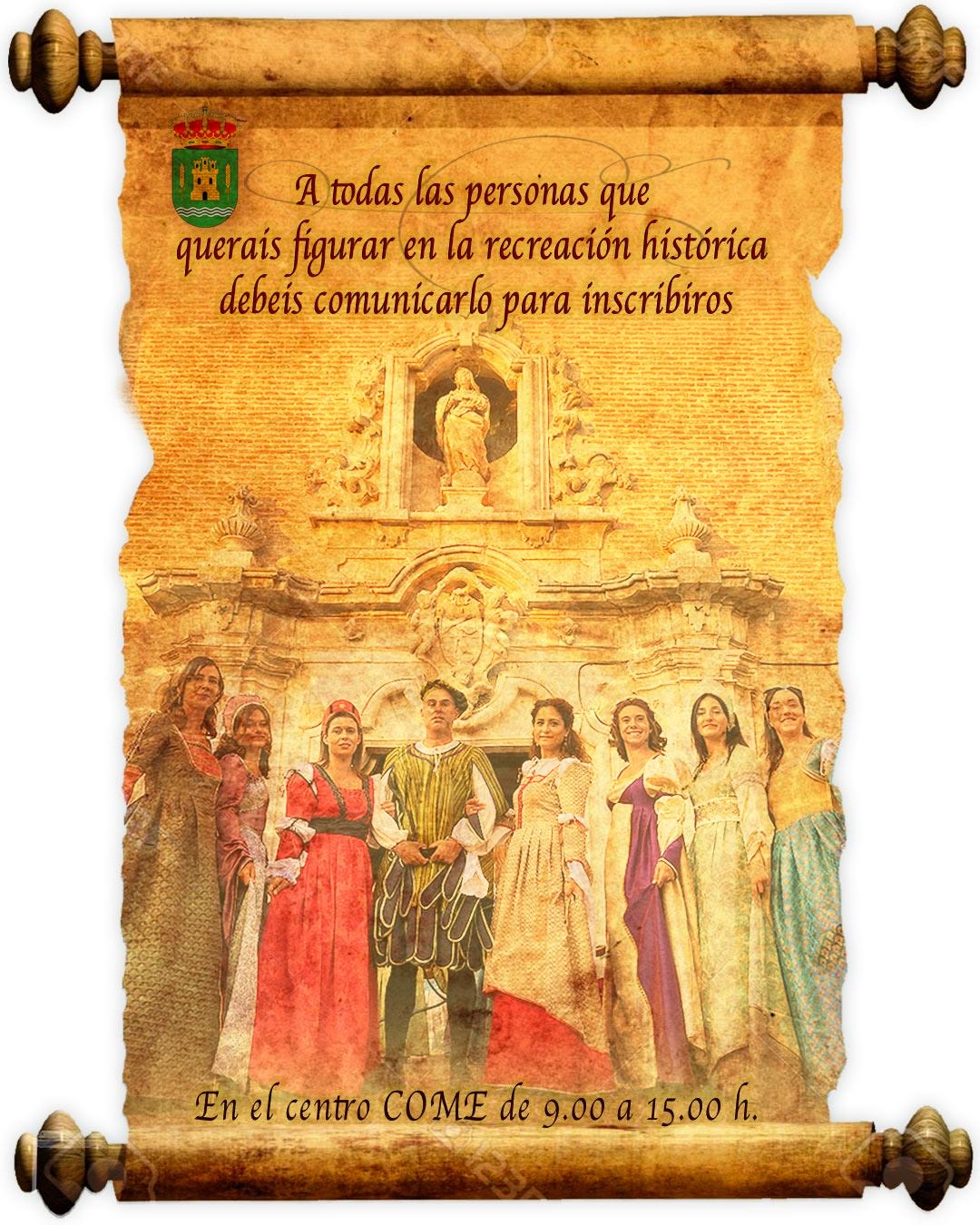 El Ayuntamiento informa que ya está abierto el plazo de inscripción para todas las personas interesadas en participar como figurantes en la recreación histórica del Encuentro Real y El Cortejo Fúnebre.