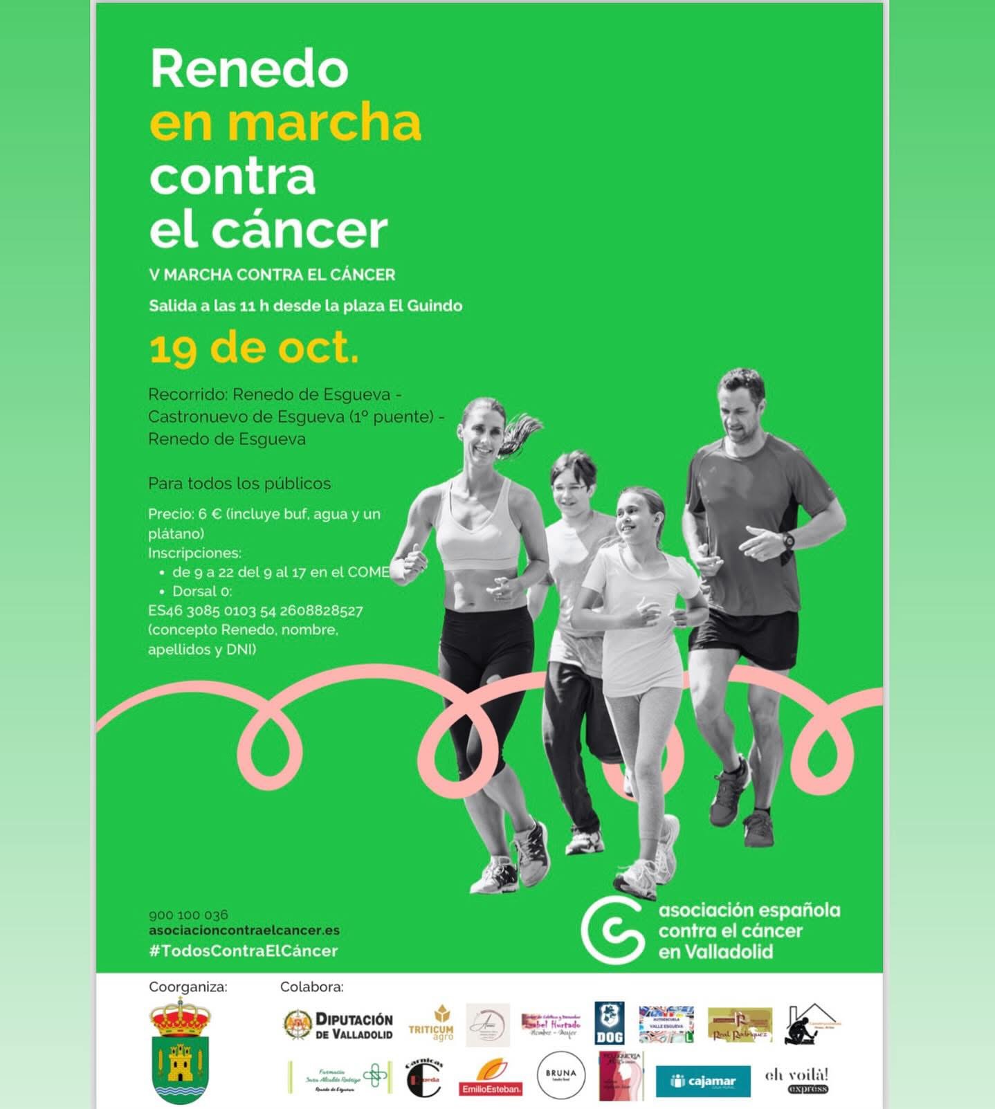 Renedo de Esgueva vuelve a volcarse en la lucha contra el cáncer con la V Marcha Contra el Cáncer, organizada en colaboración con la Asociación Española Contra el Cáncer en Valladolid.