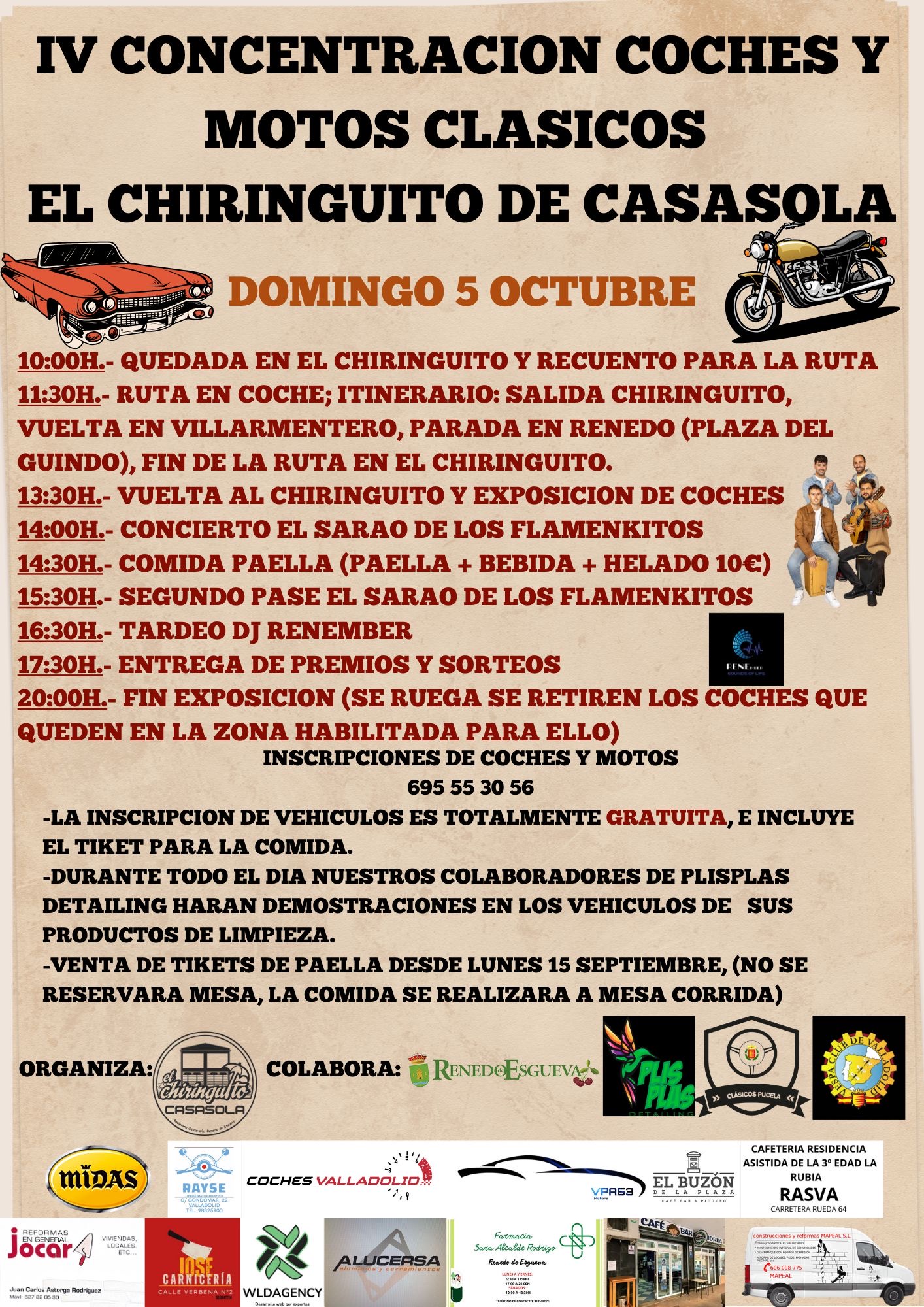 El próximo domingo 5 de octubre, El Chiringuito de Casasola acogerá la IV Concentración de Coches y Motos Clásicos, un evento que ya se ha consolidado como una cita imprescindible para los amantes del motor y el público familiar.