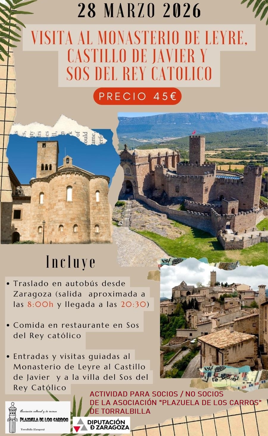 Para apuntarse a la *Excursión de Monasterio de Leyre - Castillo de Javier - Sos* del próximo sábado 28 de marzo contactar a través de