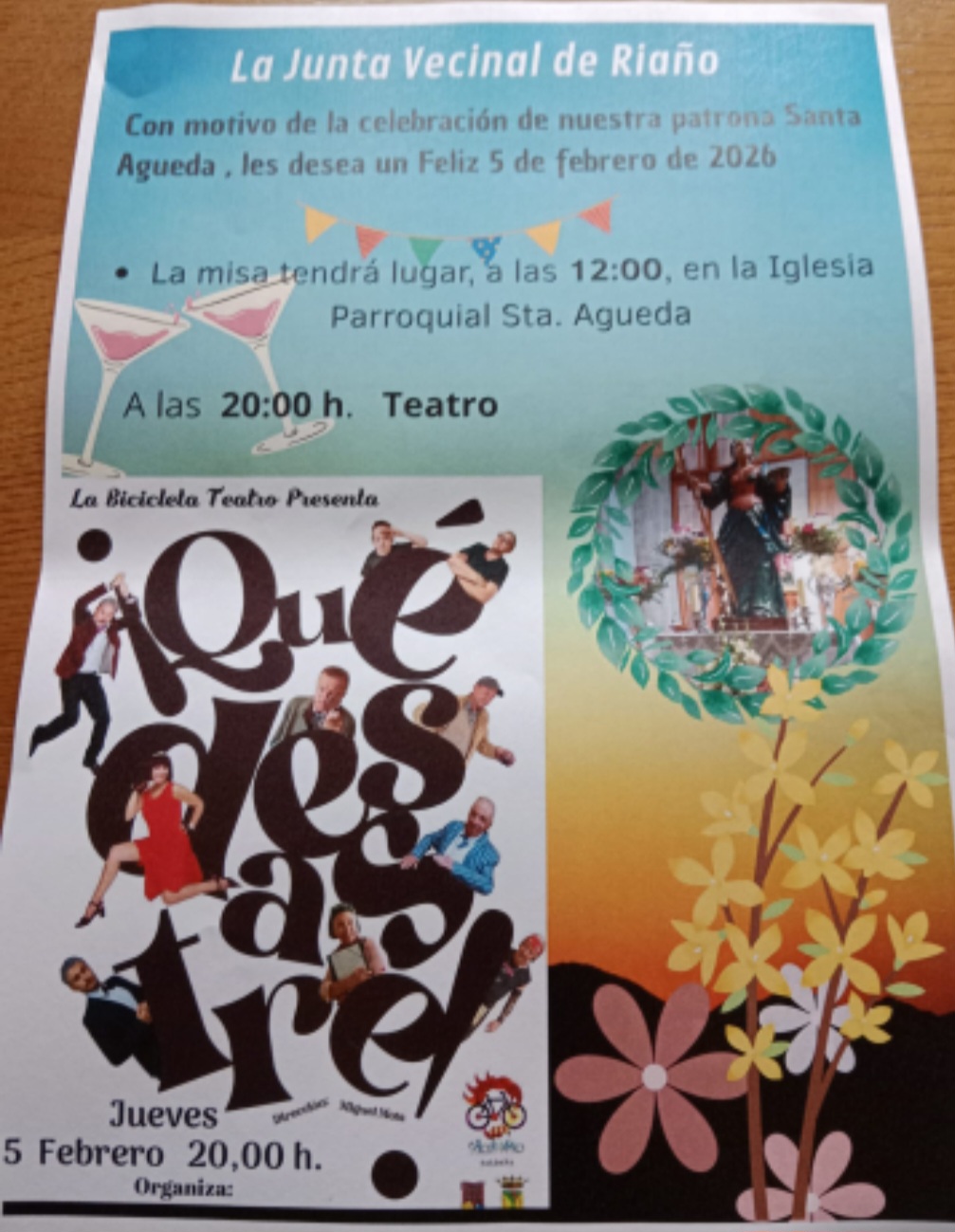 El.próximo 05 de febrero se llevará a cabo la fiesta en honor a la patrona de Riaño Santa Águeda, con misa en la Iglesia Parroquial a las 12.00 horas, seguidamente la Junta Vecinal de Riaño ofrecera a todos los asistentes con pastas, bollo y bebida.