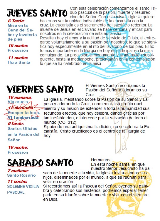 Nuestra localidad se prepara para vivir sus días más señalados, donde el recogimiento y la tradición se unen en cada una de nuestras celebraciones. Les invitamos a acompañarnos y a compartir el sentimiento de nuestra comunida(...)