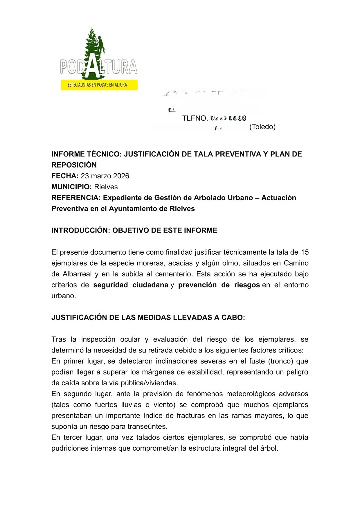 Desde el Ayuntamiento de Rielves queremos informar a nuestros vecinos y vecinas sobre la reciente actuación de tala preventiva llevada a cabo en distintos puntos del municipio, ante las informaciones inexactas que se han difundido en los últimos días.