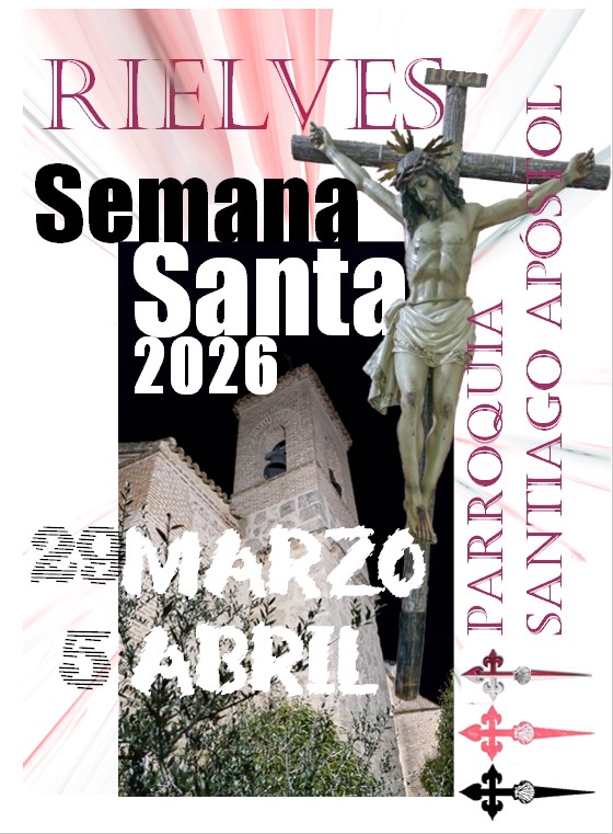 El Excelentísimo Ayuntamiento de Rielves, en colaboración con la Parroquia de Santiago Apóstol, se complace en invitar a todos los vecinos y visitantes a participar en los solemnes actos programados con motivo de la Semana Santa 2026.