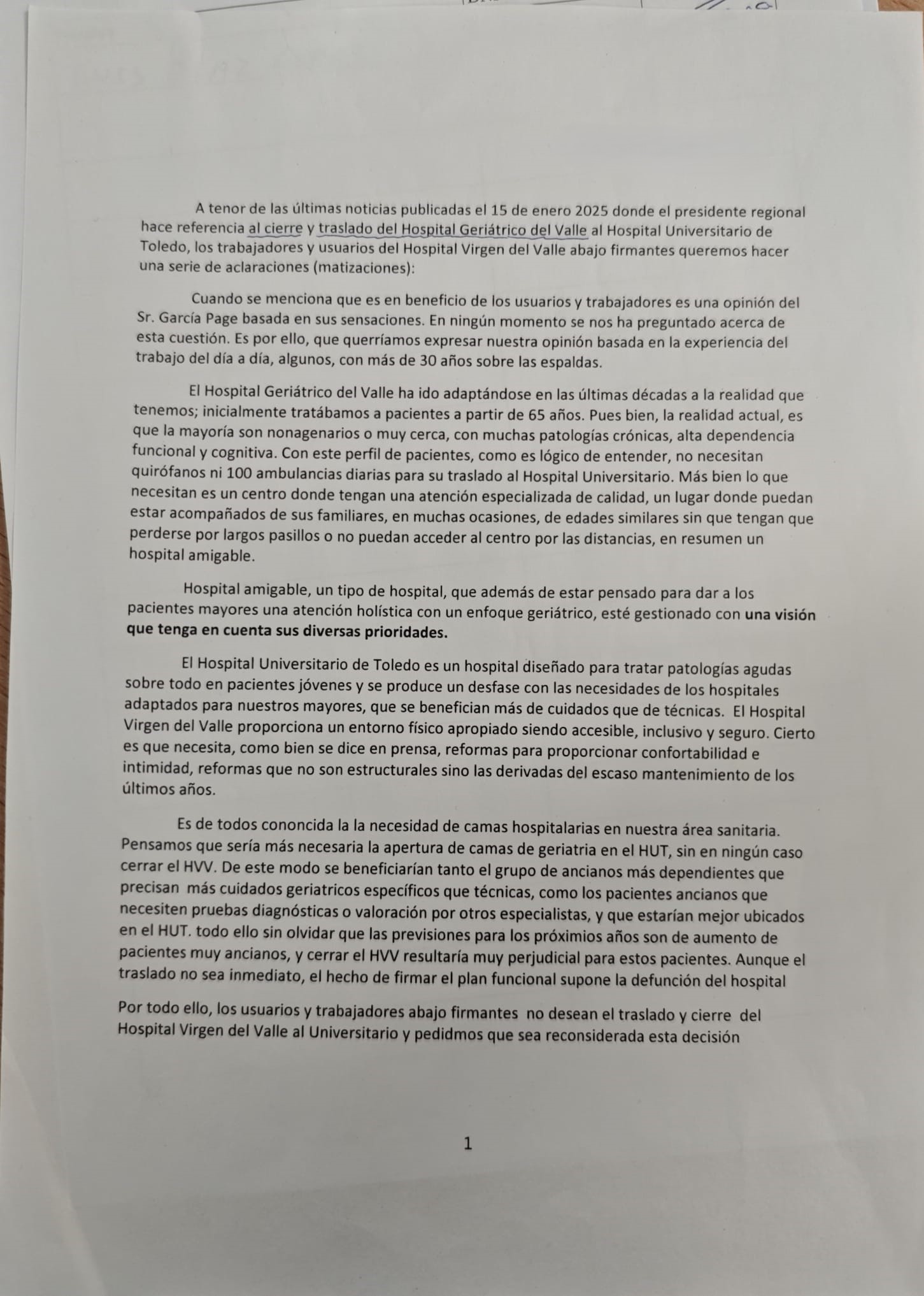 El Hospital Virgen del Valle ha sido, durante décadas, el referente geriátrico de nuestra provincia. Un lugar donde nuestros mayores reciben una atención humanizada, cercana y adaptada a sus necesidades. Ahora, su cierre y traslado al nuevo Hospital Universitario de Toledo (HUT) pone en riesgo este modelo de cuidados.