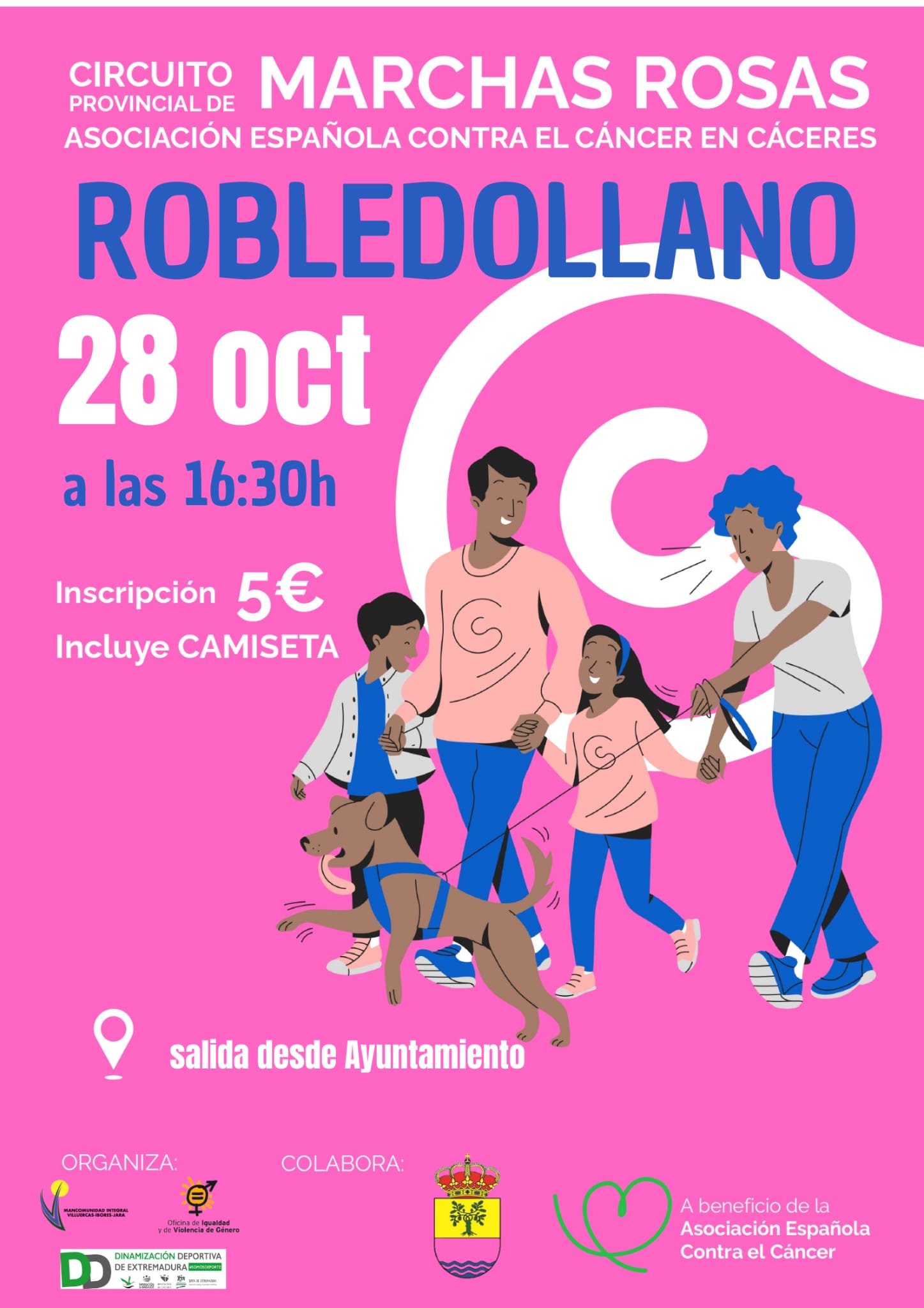 Se informa que hay camisetas para la marcha rosa en el ayuntamiento. -