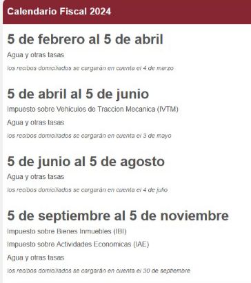 El 2º trimestre 2024, se cobrara en el cuarto periodo, 5 de septiembre al 5 de noviembre (los recibos domiciliados se cargaran en cuenta el 30 septiembre)