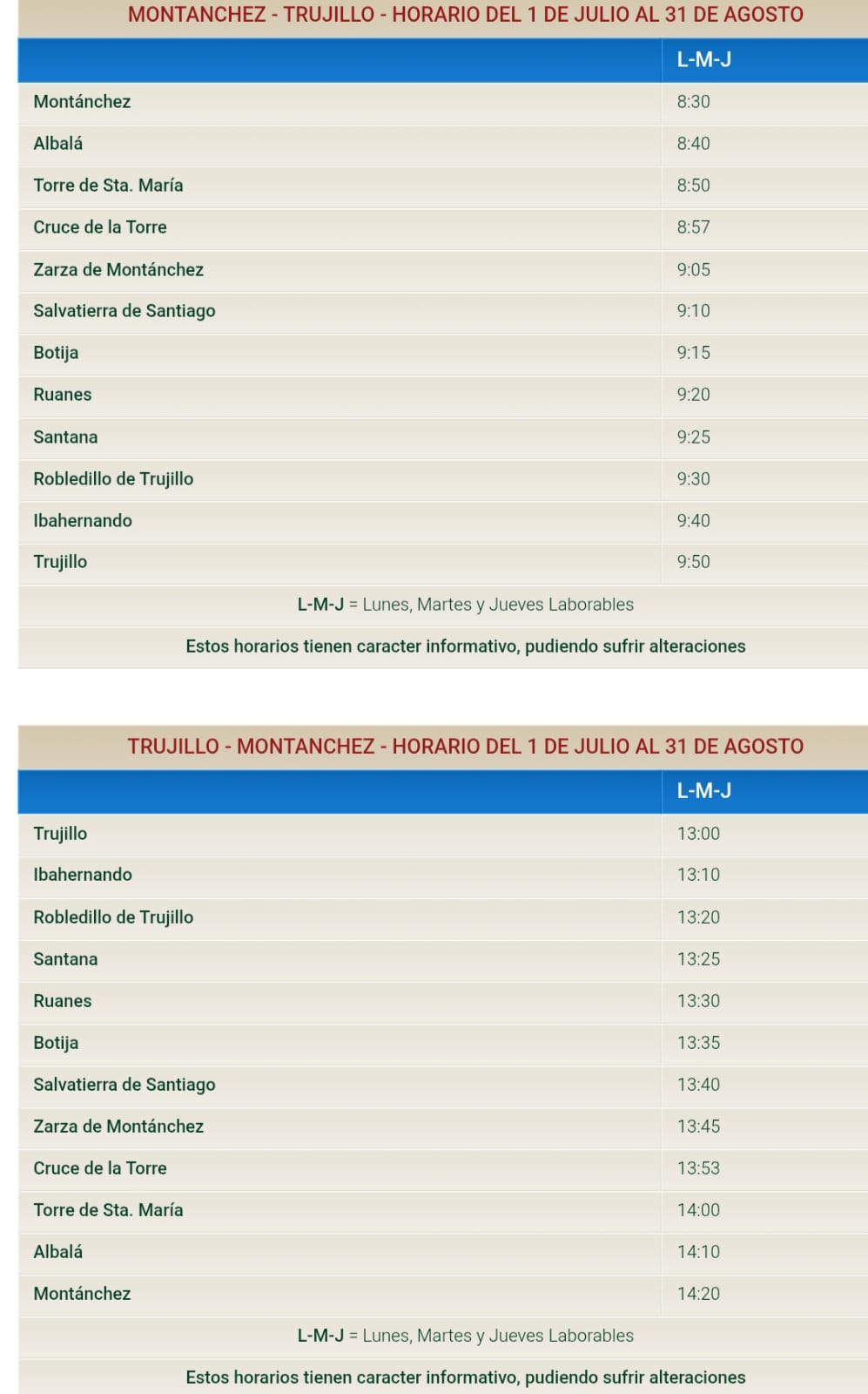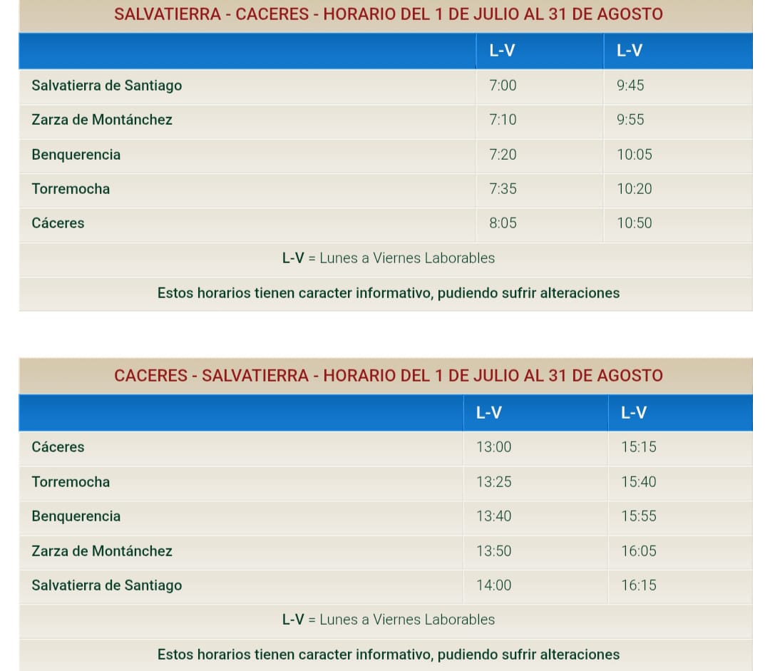 HORARIOS AUTOBUSES SOLÍS : SALVATIERRA-CÁCERES / MONTÁNCHEZ-TRUJILLO