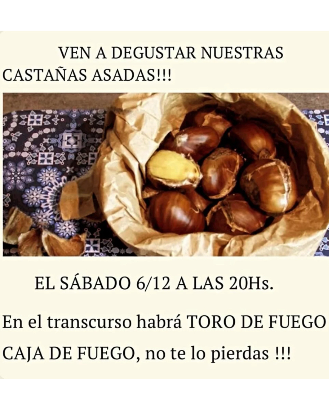 🌰Castañada popular a las 20:00 horas.
