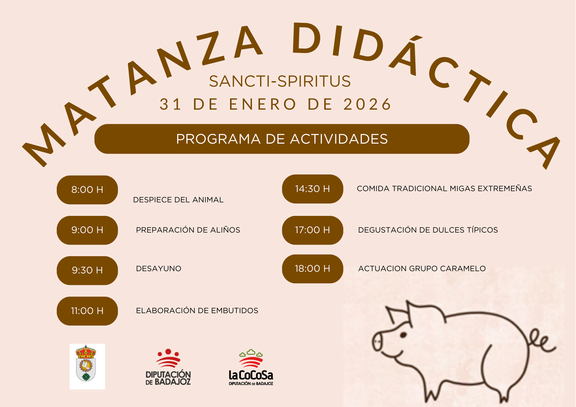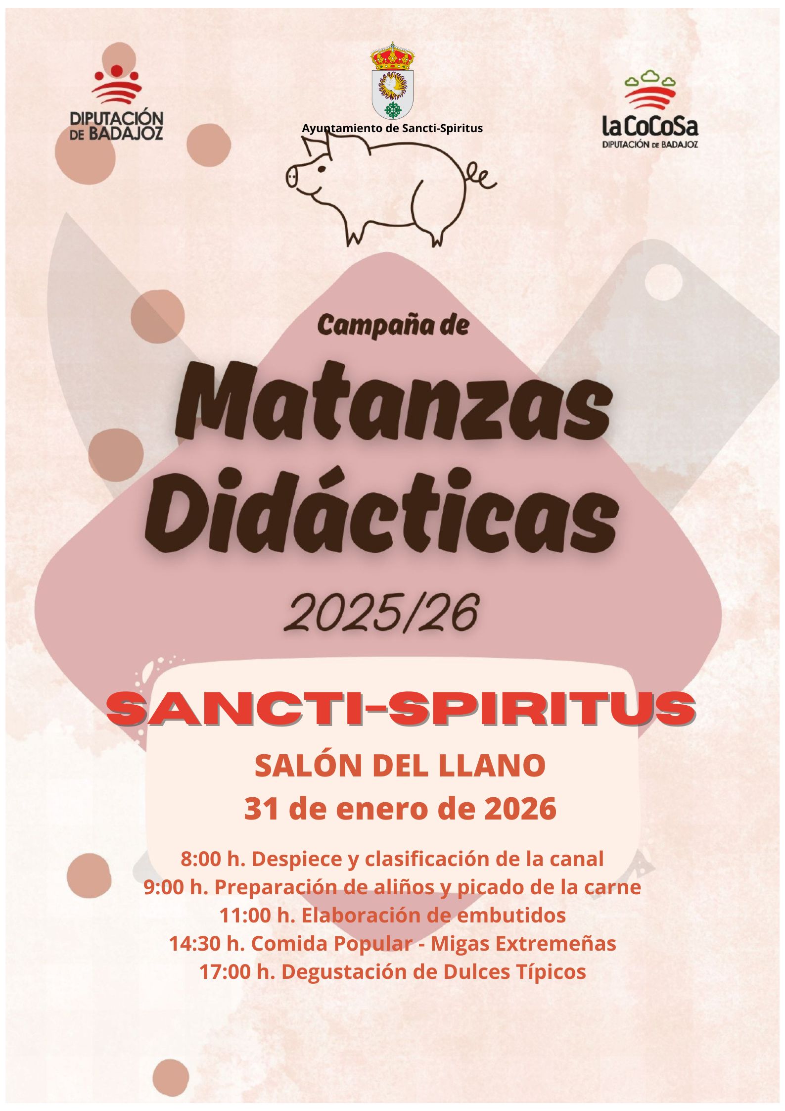 📢 El Ayuntamiento recuerda que el próximo sábado, 31 de enero de 2026, se celebrará la primera edición de la Matanza Didáctica de Sancti-Spiritus.