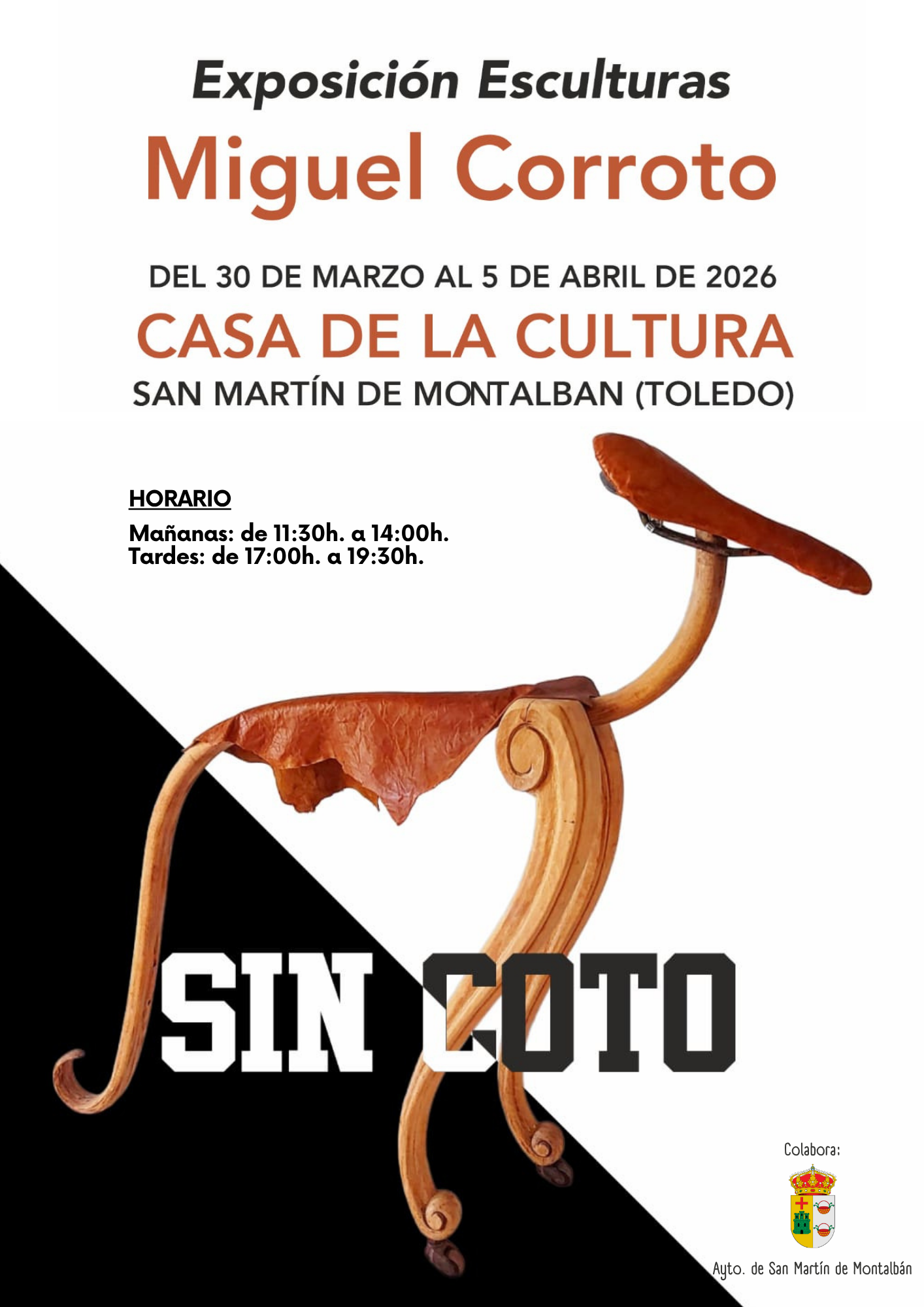 🎨 Exposición de esculturas de Miguel Corroto en la Casa de la Cultura (Inauguración 13:00h).