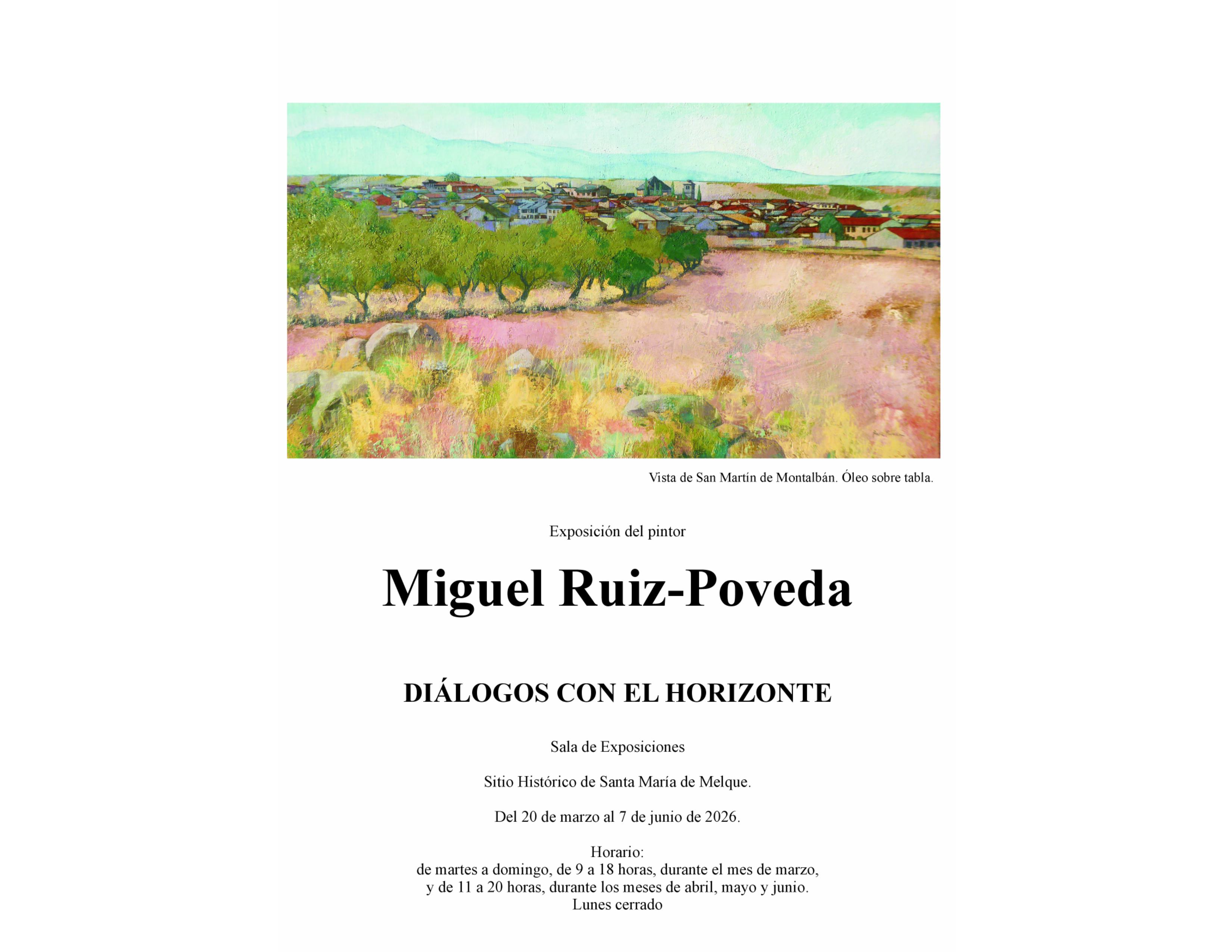 Te esperamos a las 12:00h en la inauguración de la exposición “DIÁLOGOS CON EL HORIZONTE” de Miguel Ruiz-Poveda, en la Sala de Exposiciones del Sitio Histórico de Santa María de Melque.