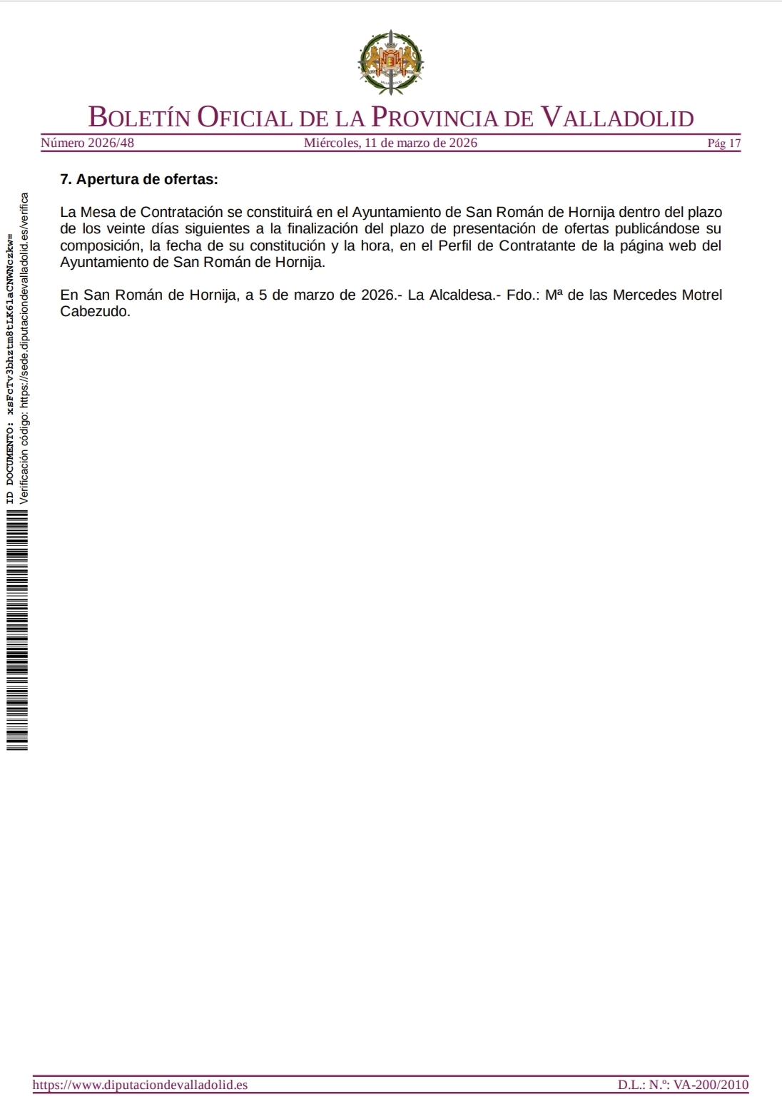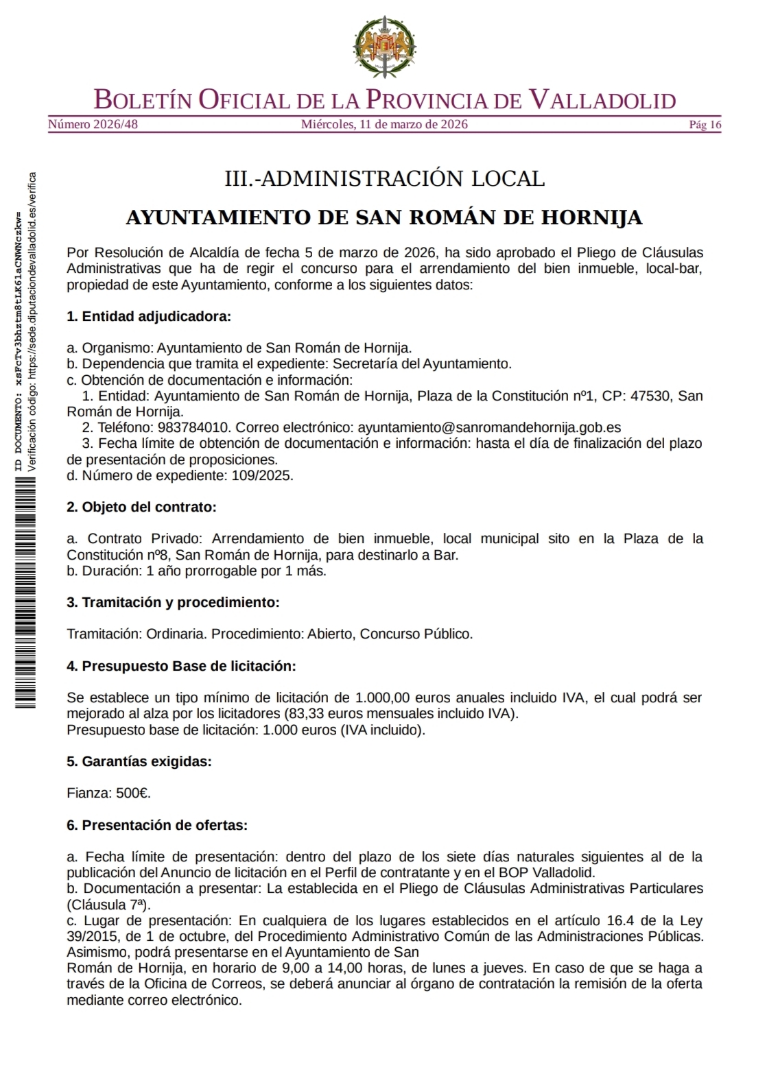📅 Plazo para presentar ofertas: 7 días naturales desde la publicación en el BOP.
