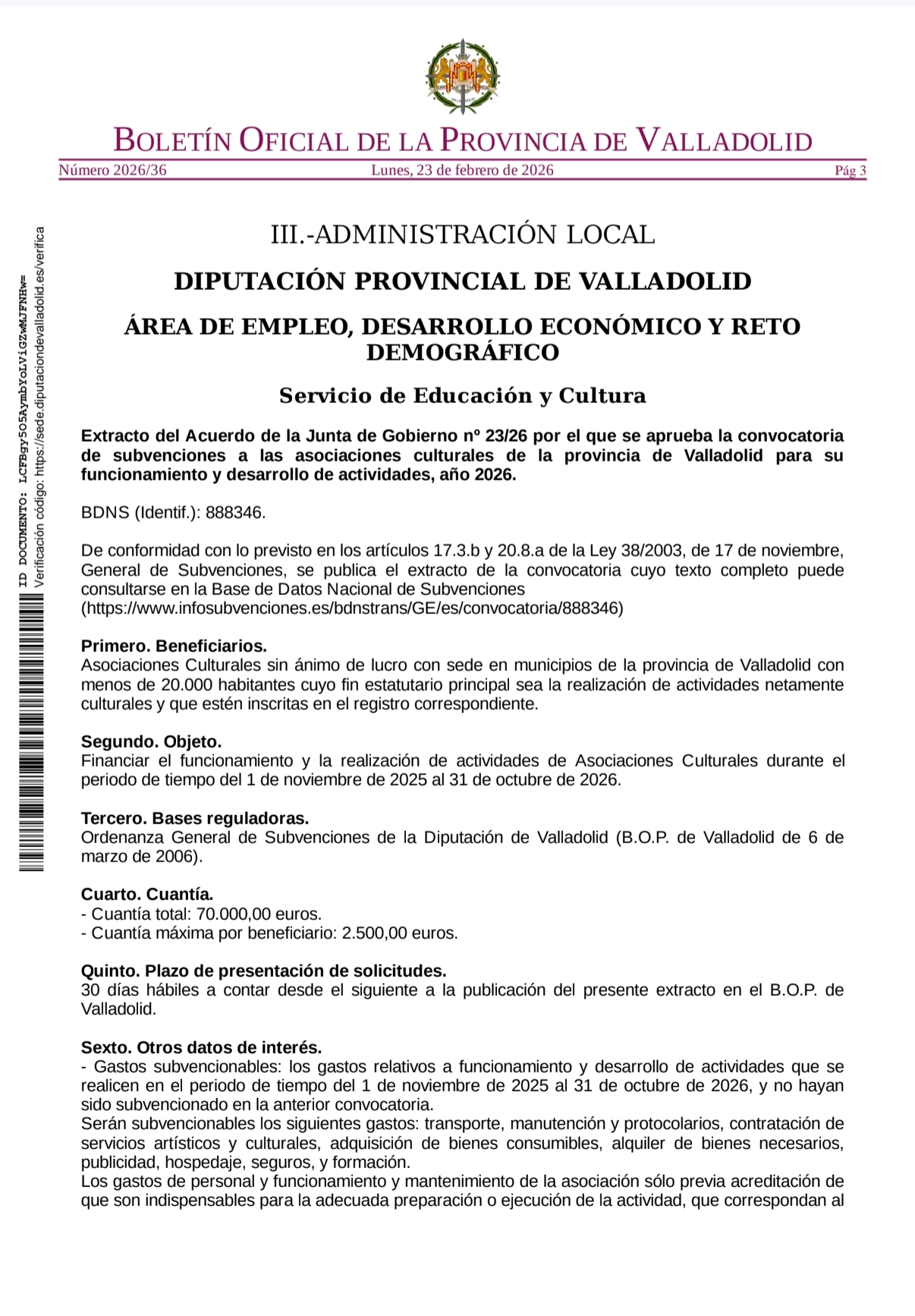 SUBVENCIONES PARA ASOCIACIONES CULTURALES. DIPUTACIÓN DE VALLADOLID