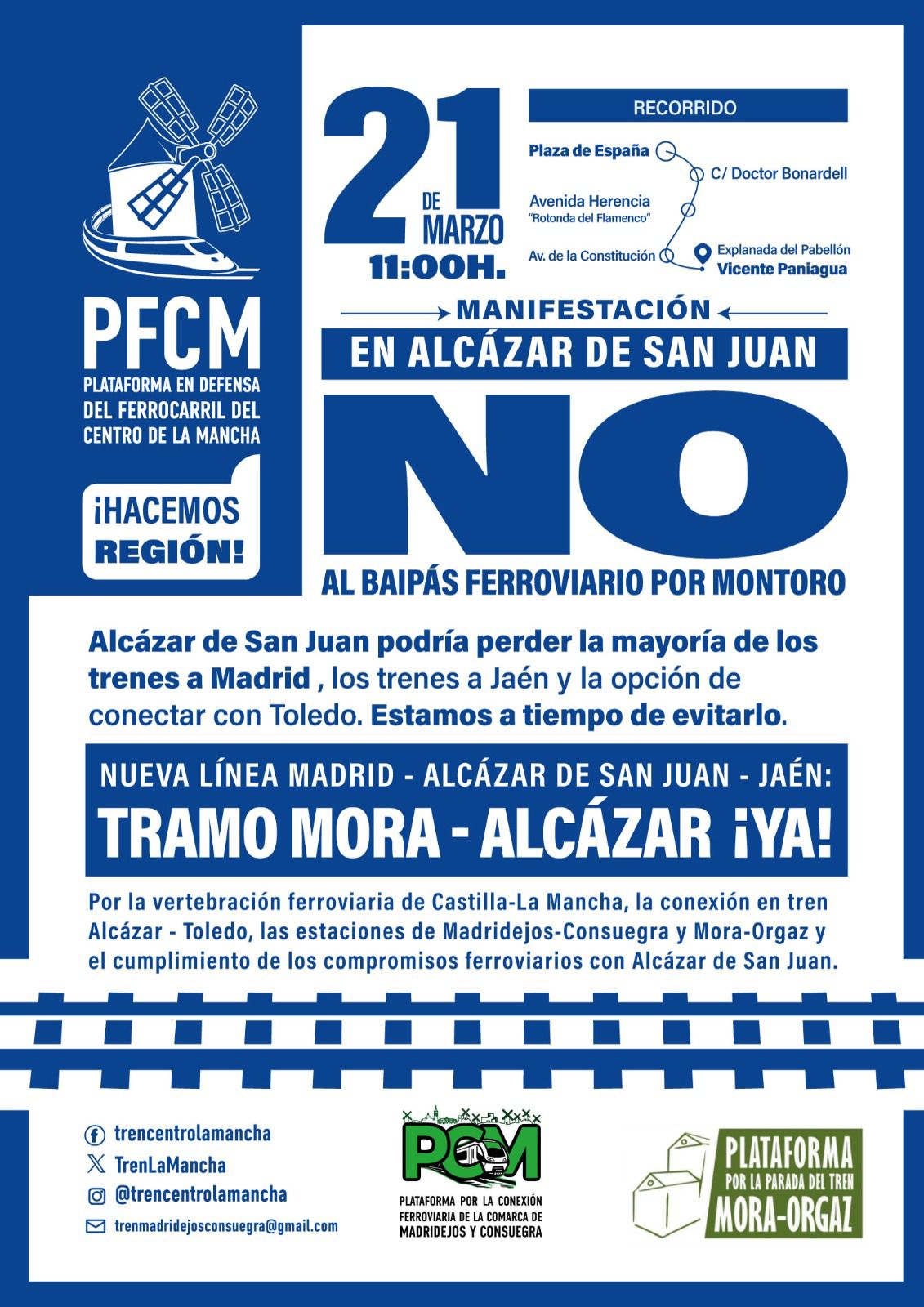 📣🚂🔵 El sábado 21 de marzo, a las 11:00 de la mañana, nos echamos a las calles de Alcázar de San Juan.