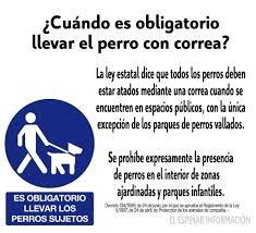 La ley estatal dice que todos los perros deben estar atados mediante una correa cuando se encuentren en espacios públicos. Se prohíbe expresamente la presencia de perros en el interior de zonas ajardinadas y parques infantiles.
