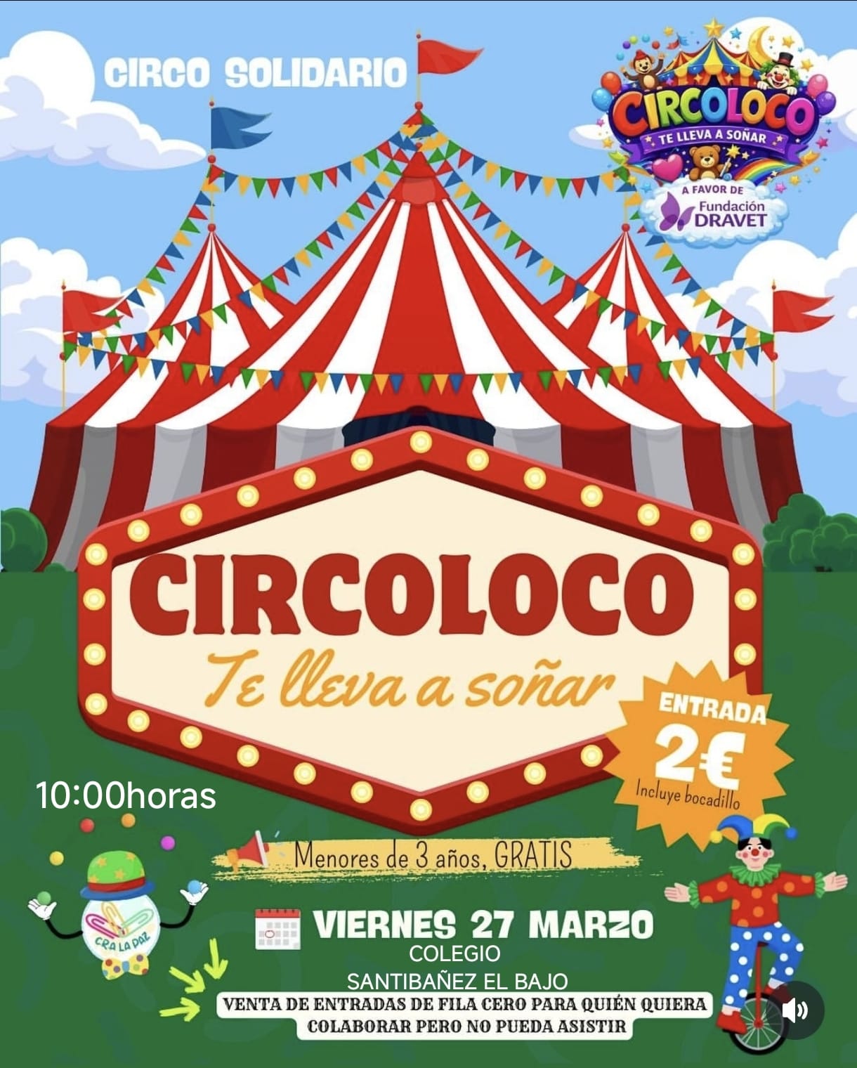 Se comunica a todos los vecinos que, en el colegio se va a realizar un Circoloco Solidario, entrada 2€.