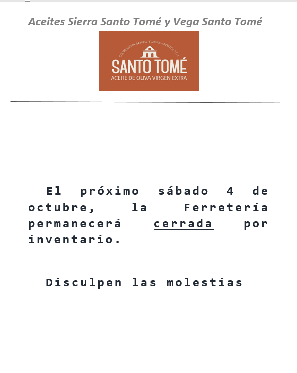 CIERRE DE COOPERATIVA PARA RECEPCIÓN DE ACEITUNA