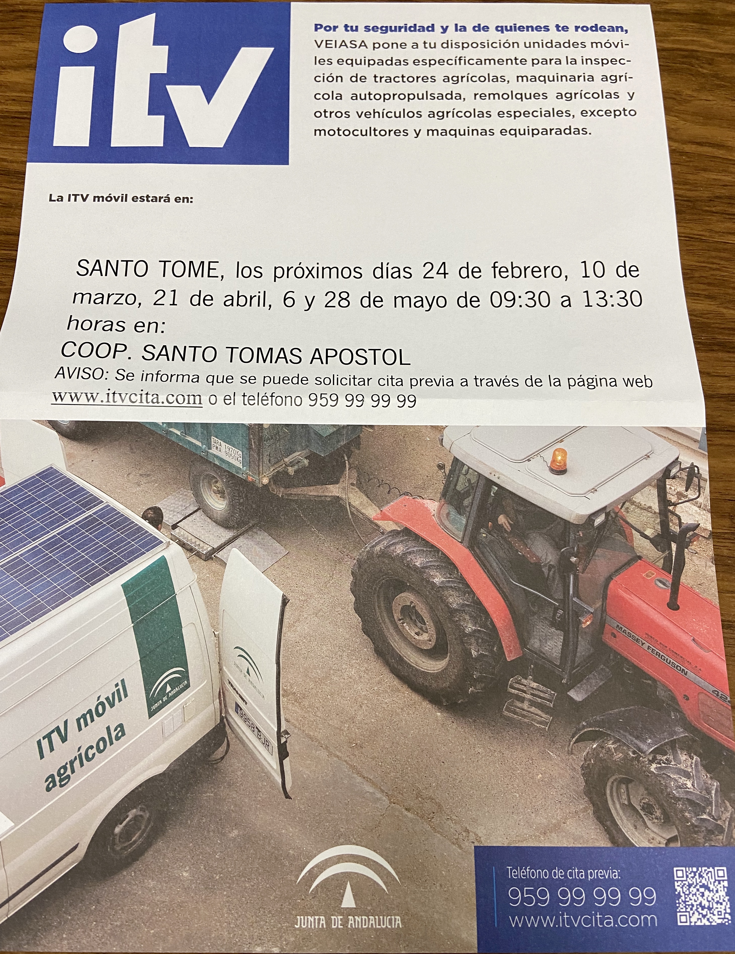 Fechas ITV movil para vehículos agrícolas en Santo Tomé