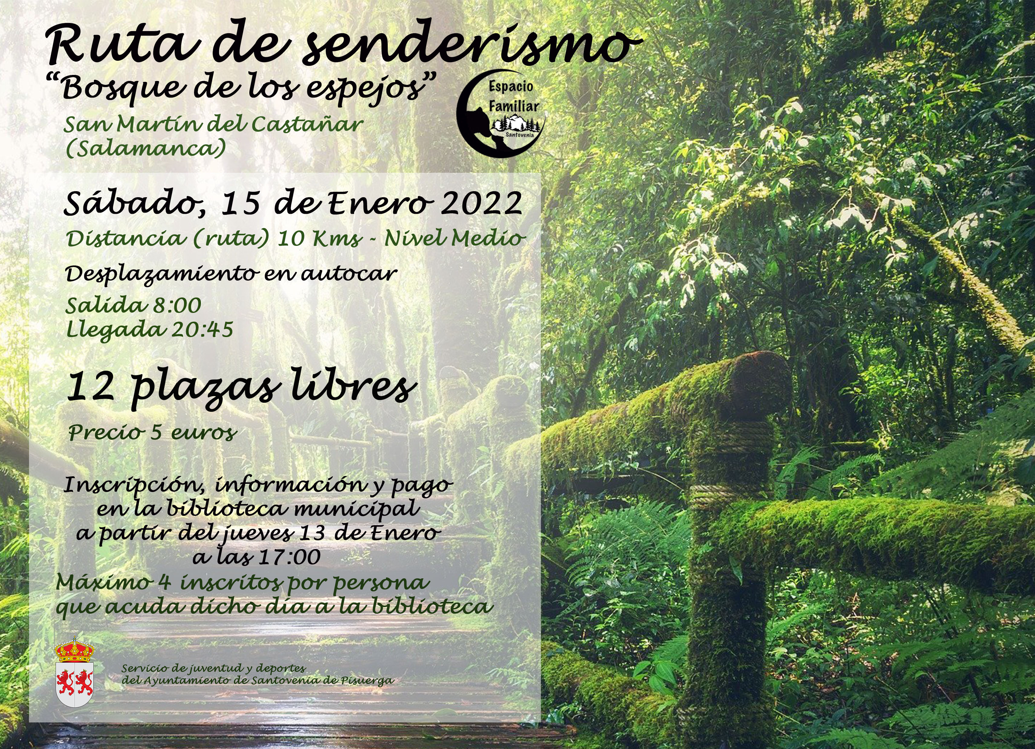 12 plazas libres RUTA DE SENDERISMO "Bosque de los espejos"2022-01-11 12:03:34GeneralSábado, 15 de Enero 2022