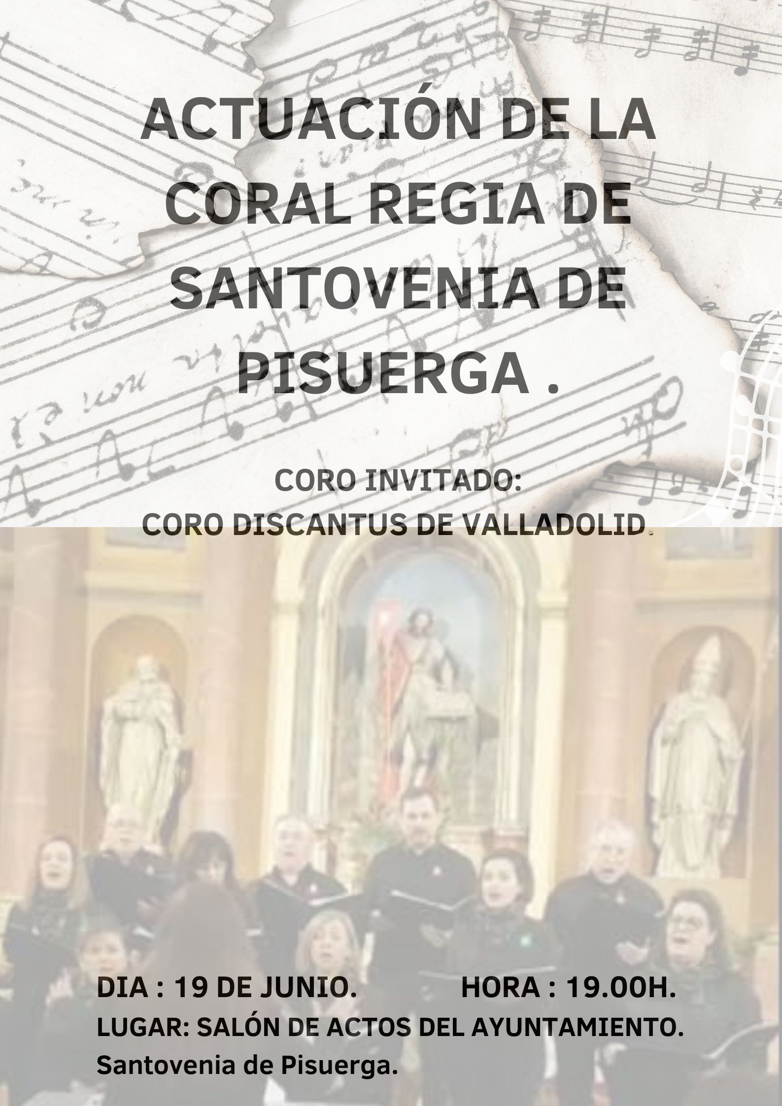 **AVISO** CAMBIO DE UBICACIÓN DE LA ACTUACIÓN DE LA CORAL REGIA2022-06-17 10:47:49GeneralEL PRÓXIMO DOMINGO DÍA 19 DE JUNIO, HABRÁ UN CAMBIO DE UBICACIÓN, DE LA ACTUACIÓN DE LA CORAL REGIA DE SANTOVENIA DE PISUERGA CON EL CORO DISCANTUS DE VALLADOLID.
