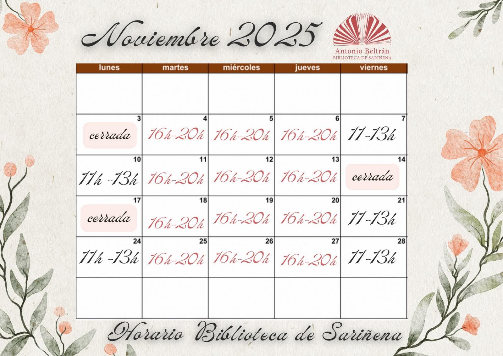 📚🍂 Parece que el frío aún no llega… ¡pero los libros ya te esperan! con el horario de noviembre.🍂