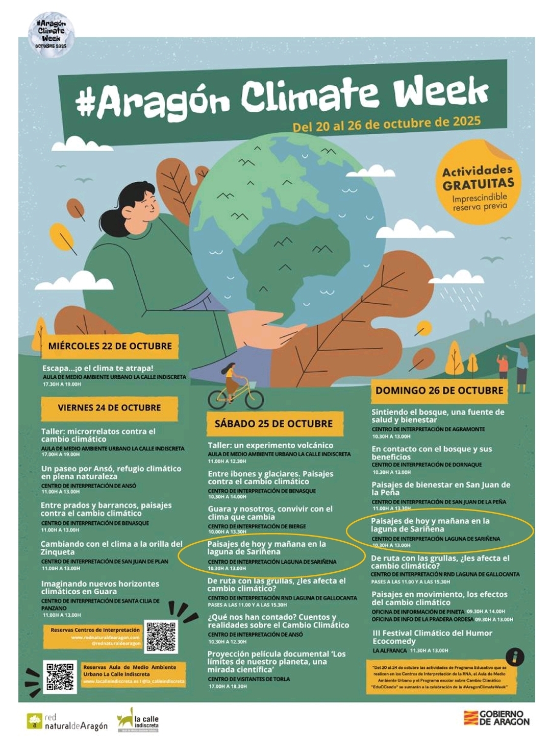 🔸 Sábado 25 de octubre – “Paisajes de hoy y mañana en La Laguna de Sariñena” (10:30 h a 13:00 h):