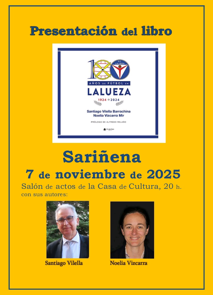 Se presentará en Sariñena el libro “100 años de fútbol en Lalueza (1924-2024)”, escrito por Santiago Vilella Barrachina y Noelia Vizcarra Mir, con prólogo de Alfredo Relaño.