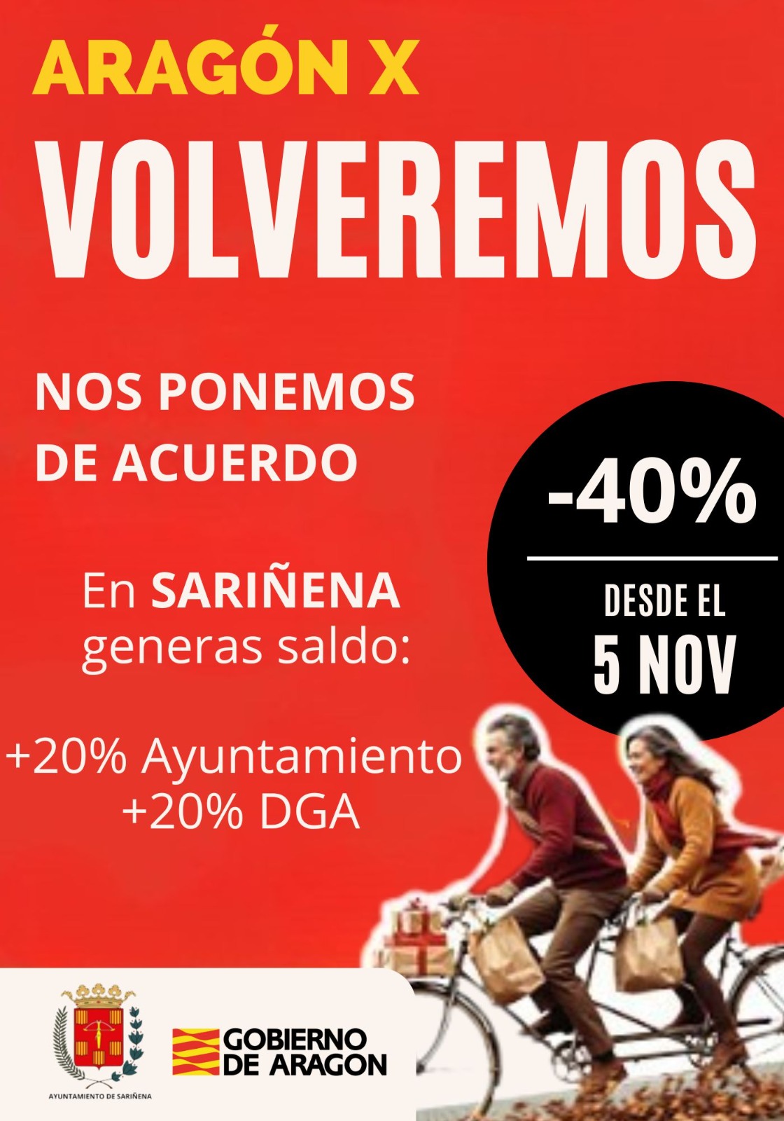 A partir del 5 de noviembre, disfruta de un 40% de saldo adicional en tus compras gracias a la colaboración entre el Ayuntamiento de Sariñena y el Gobierno de Aragón.
