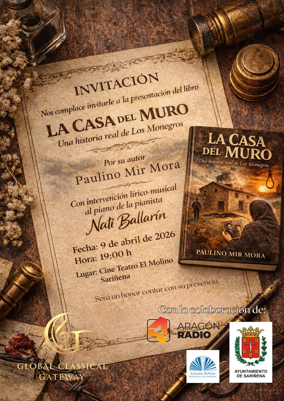 El próximo 9 de abril te invitamos a un evento muy especial: la presentación del libro “La Casa del Muro. Una historia real de Los Monegros”, de Paulino Mir Mora.